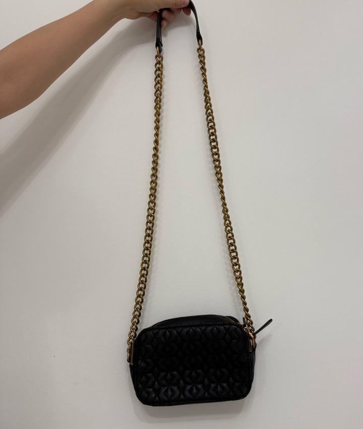 Компактная и элегантная сумка с фирменным логотипом и длинным ремнём-цепочкой. Удобно носить на плече или через плечо. Классический чёрный цвет легко сочетается с любым образом — отлично подойдёт как на каждый день, так и для выхода. Поместятся телефон, карта, ключи и другие необходимые мелочи. Модный и удобный аксессуар, который дополнит любой образ. Артикул: 482924