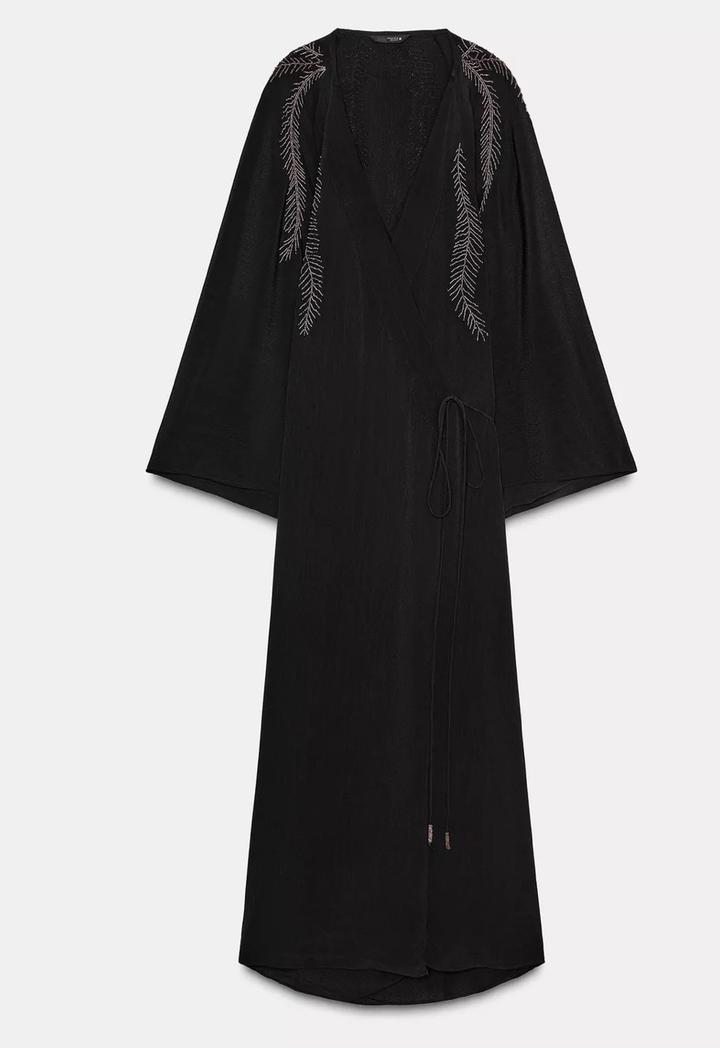 Платье- кимоно Zara 🖤 модель на запах 🖤 узоры вышиты бисером 🩶 можно носить не только как платье, но и как накидку 🖤 универсальная модель 🖤 посетите мою страницу, много стильных и новых вещей 🩶 Артикул: 482983