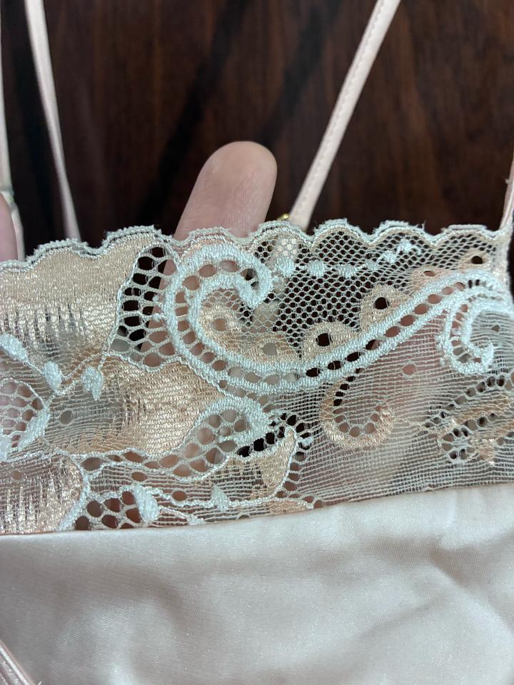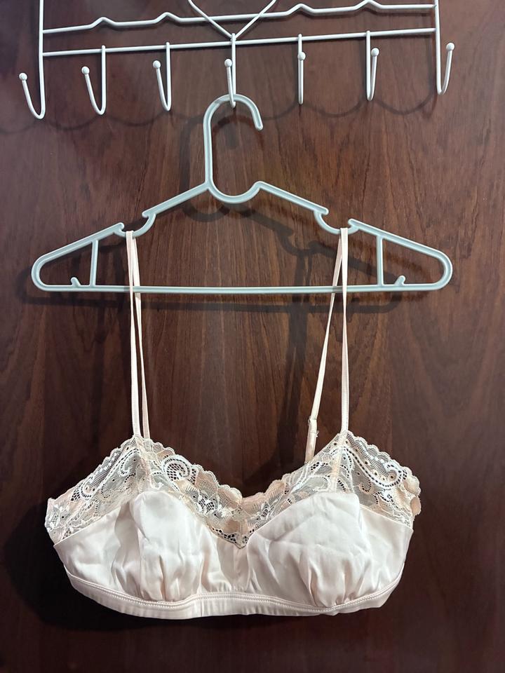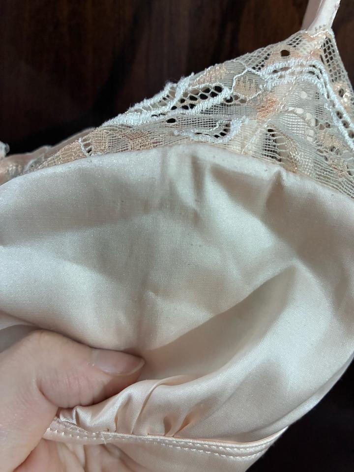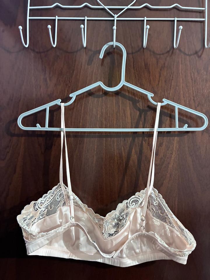 Бралетт из вискозы под шелк, с кружевными деталями, очень приятное к коже Б/у, в хорошем состоянии, есть мелкие следы носки, но почти не заметно (см. фото 5) На размер 75B Артикул: 483114