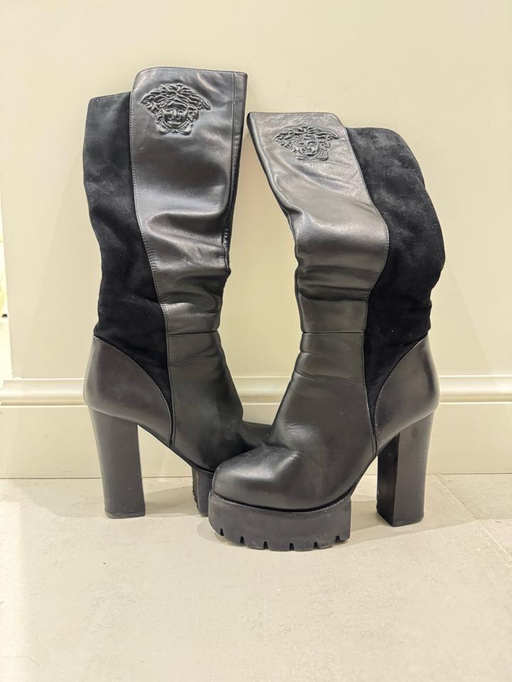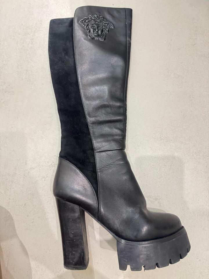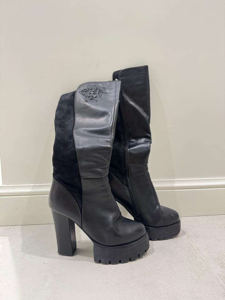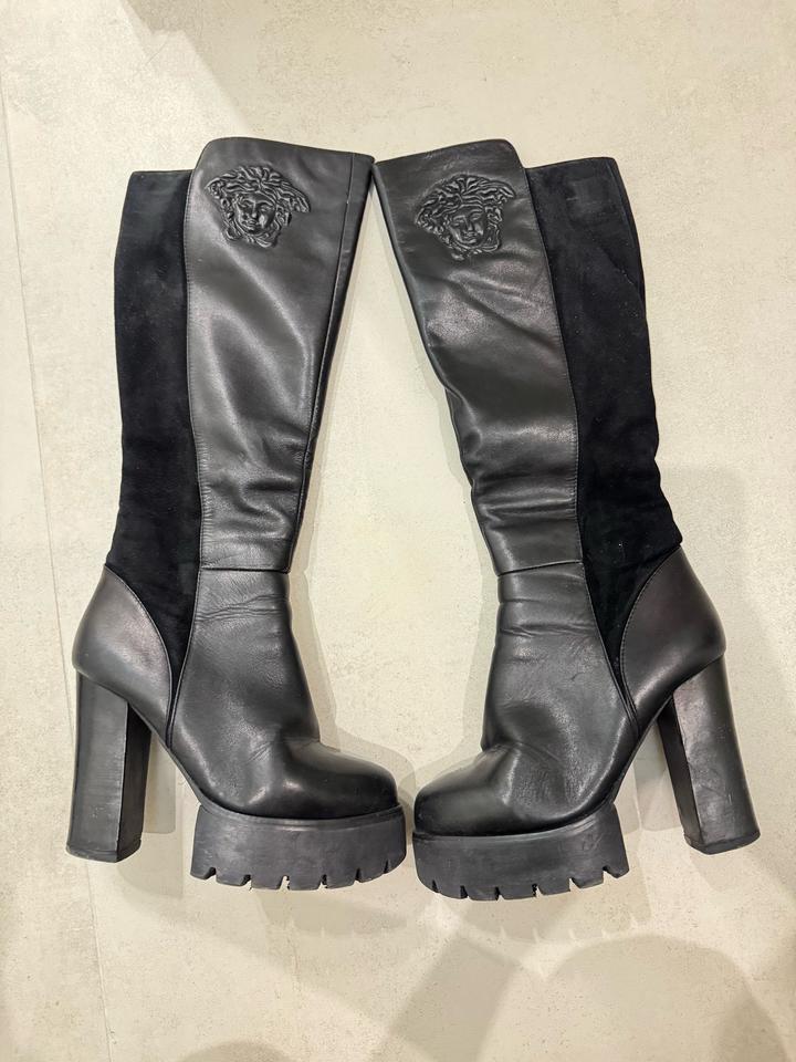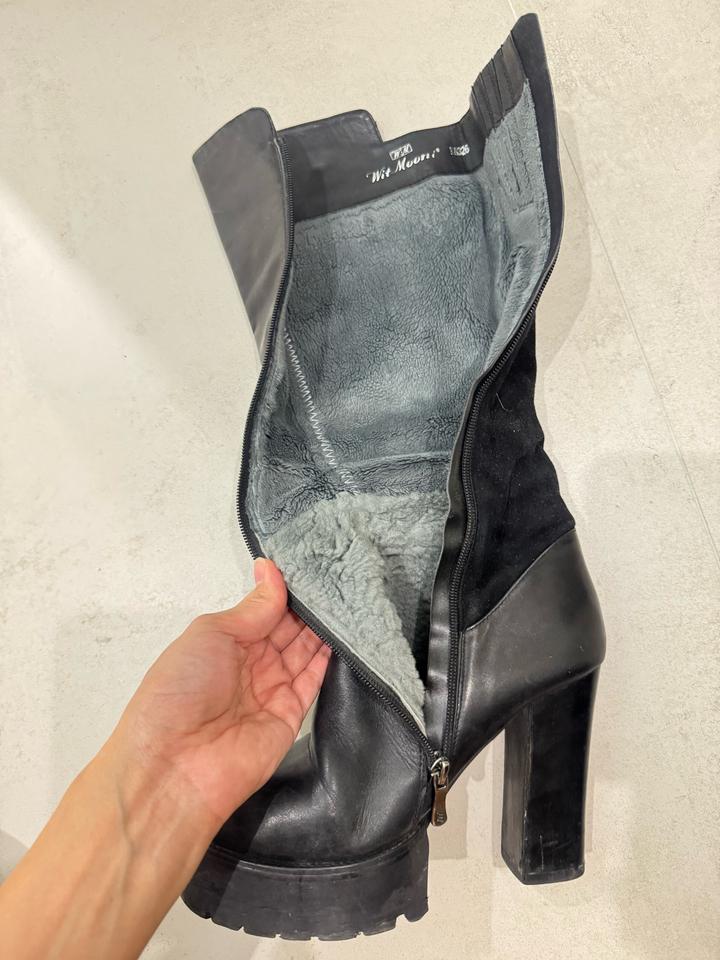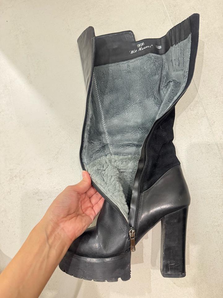 Черные кожанные сапоги на каблуке и платформе с элементами замши. Роскошные сапоги. Полностью натуральная кожа, натуральная замша и натуральная шерсть внутри, турецкая фабричная обувь. Гарантированно натуральная кожа и шерсть, если закажете и засомневаетесь в качестве кожи или шерсти, можете смело отправлять назад) В отличном качестве, продаю, потому что не ношу :) Зимние, очень теплые. Артикул: 483284