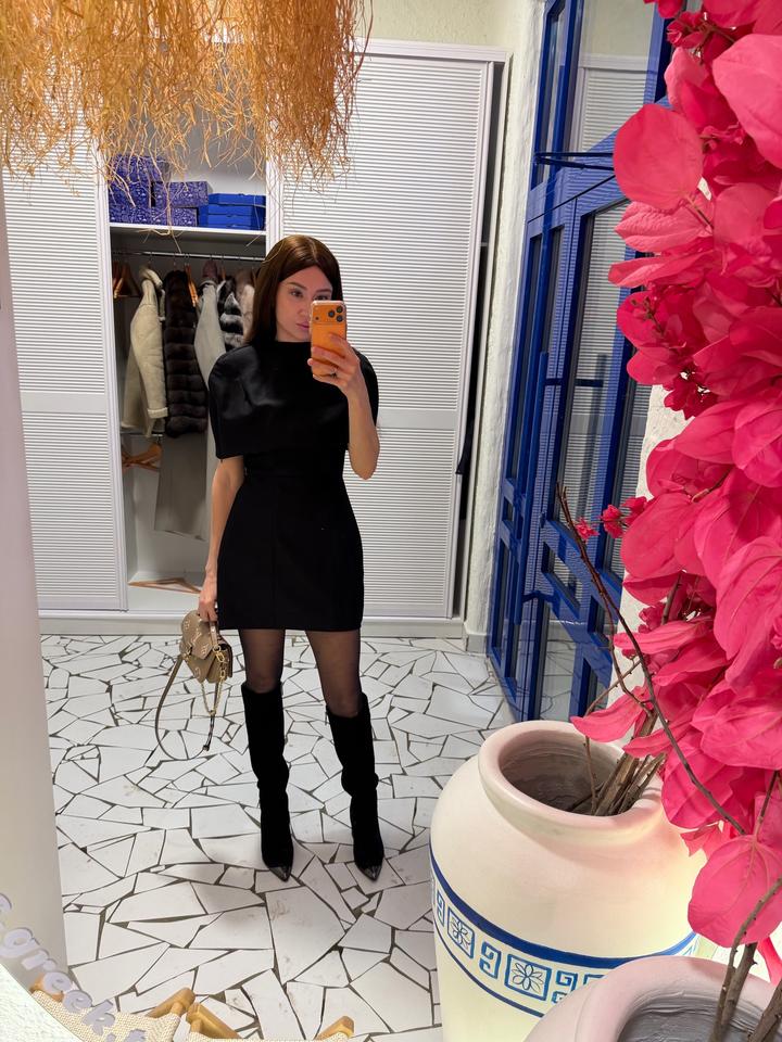 Черное короткое платье сарафан с накидкойS/M
