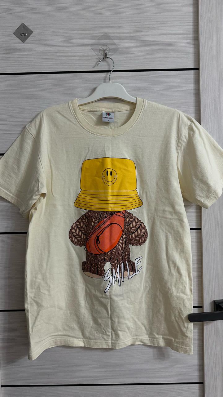 Футболка в лимонном цвете с классным принтом. В размере Л, покупала в Тайланде, 100% хлопок, качественная ткань. Носила редко. Состояние отличное. Артикул: 483485