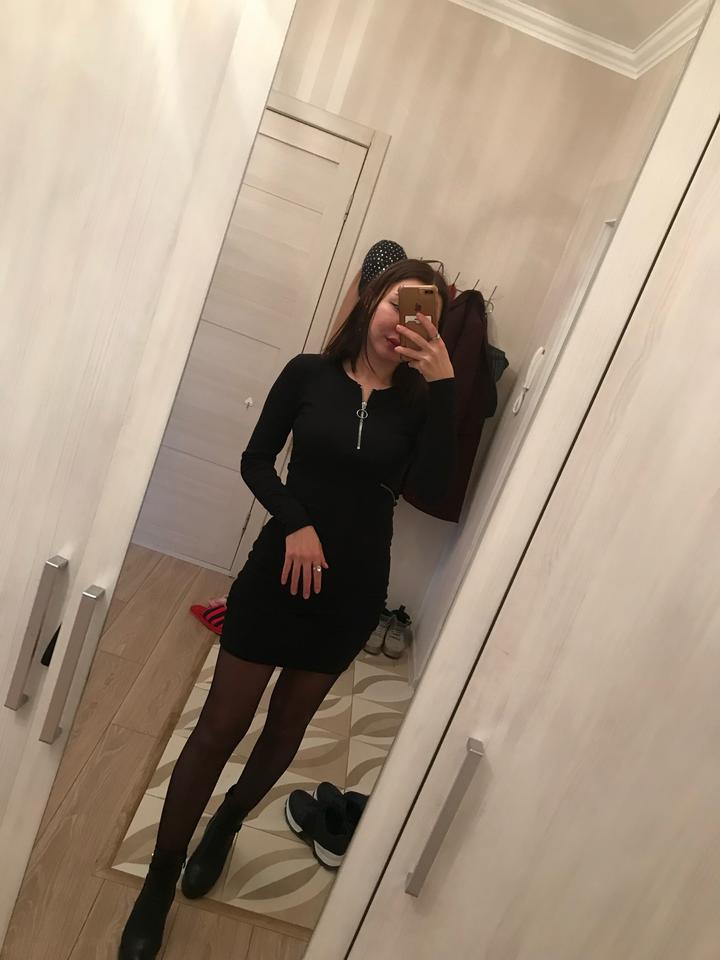 Универсальное облегающее черное платье-мини с длинными рукавами и застежкой-молнией на груди. Платье очень удобное и выигрышное. Продаю, так как размер стал мал. Артикул: 483510
