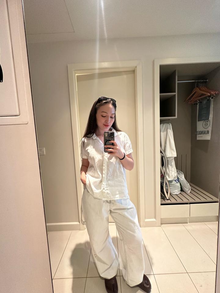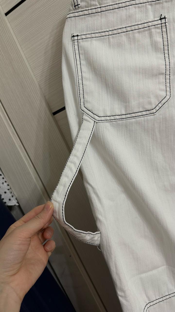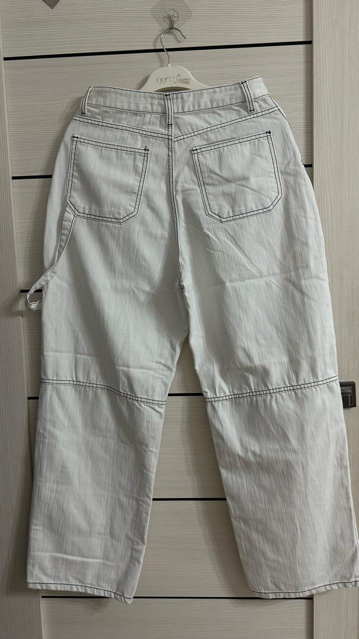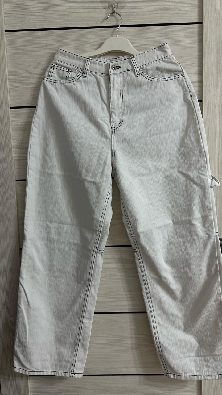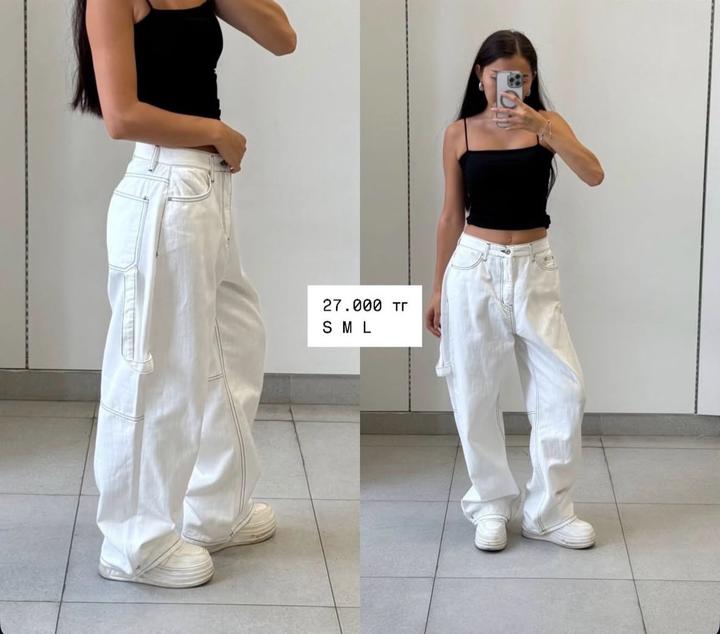 Белые летние джинсы корейские. 100% хлопок. В них вообще не жарко, мягкая. Покупала в магазине корейской одежды Forever Young за 27.000 тг. Надевала пару раз. Состояние отличное. Артикул: 483558