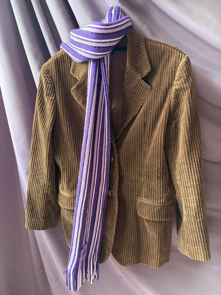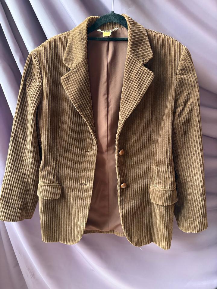 Пиджак с юбкой из коричневого вельвета. Где юбка размера small (пояс по длине 30 см (умножаем на два), длина юбки 48 см), пиджак оверсайз (в размере medium). После х/ч. Качество пошива и ткани на века, цена символична, ниже масс маркета. Артикул: 483699