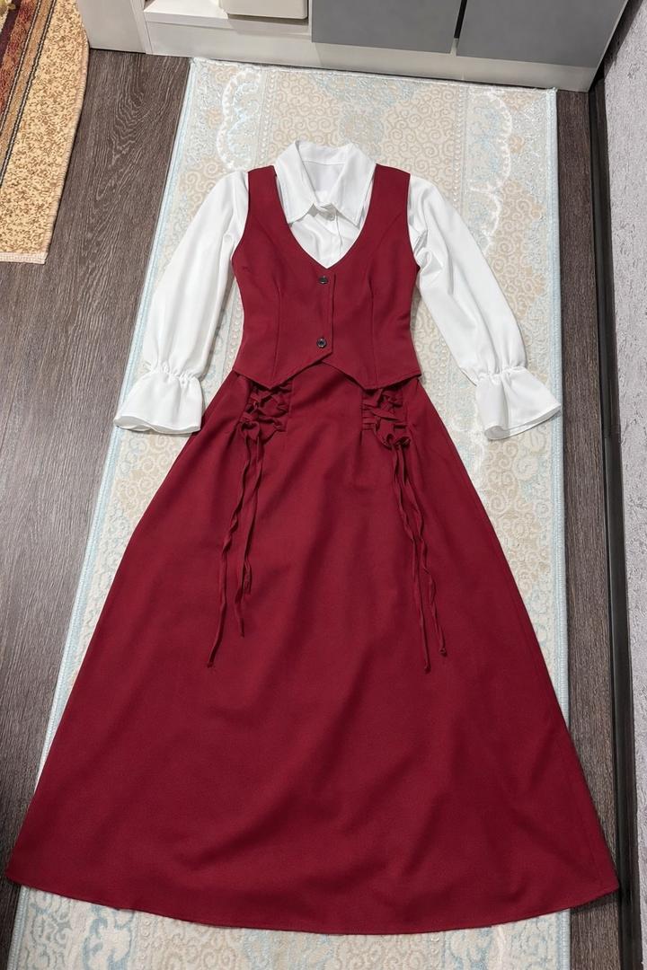 Четверка юбка пиджак жилетка рубашка бордоваяS