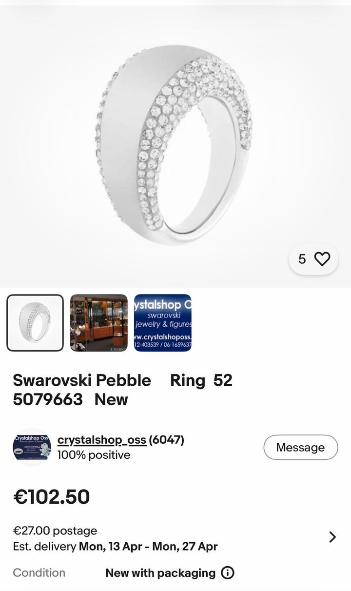 Оригинальное коктейльное кольцо из коллекции Swarovski Pebble — стильное и очень заметное украшение с фирменными сверкающими кристаллами. Очень красиво ловит свет и выглядит по-настоящему роскошно. Фотографии просто не в состоянии передать этот блеск. Покупалось онлайн за 149$. Носилось только на выход и аккуратно. Размер 16,5. Артикул: 483766