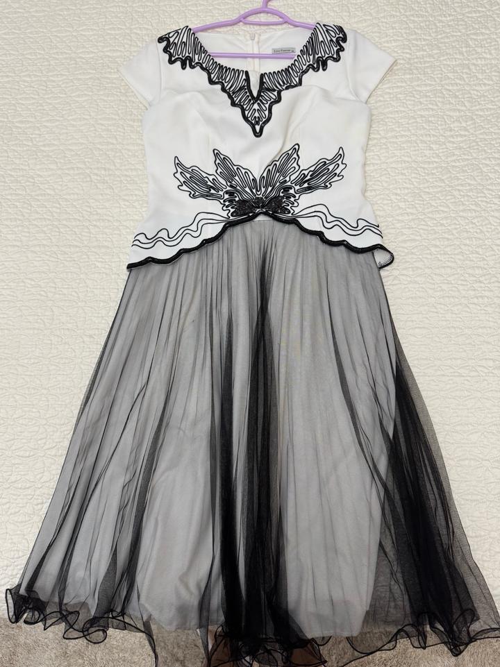 Нарядное платье белого цвета с черными узорами. Длины миди Размер М/46 Артикул: 483833