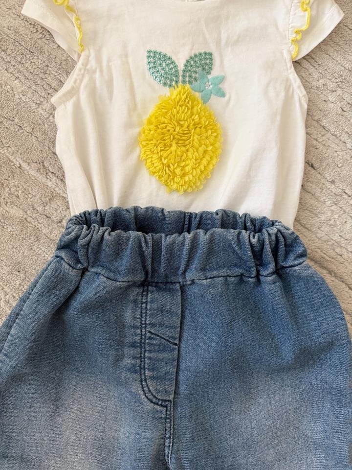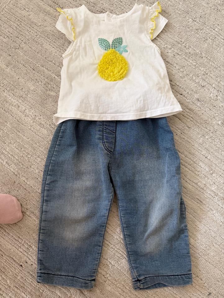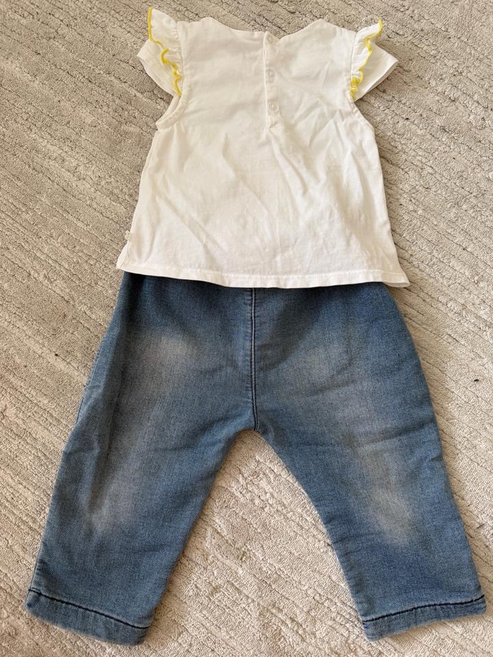 Готовый лук на девочку. Очень мягкие джинсы. Футболка практически новая, одевалась пару раз, от фирмы okaidi Артикул: 483843