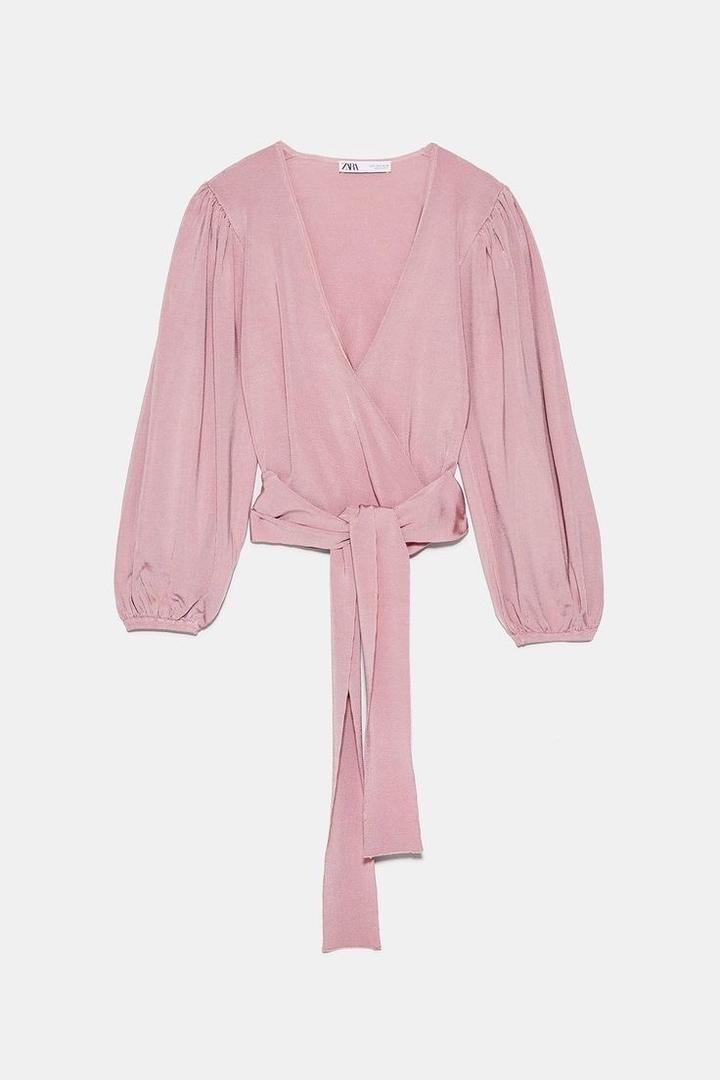 Love Republic кардиган на запах с поясом (пудрово-розовый) V-образный вырез • объёмные рукава-фонарики до локтя • широкий пояс-завязка • укороченная длина Артикул: 483878