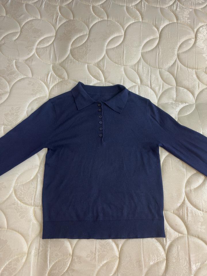 Темно-синее поло с длинным рукавом. Размер хс-с. В составе 20% шерсть. Артикул: 483911