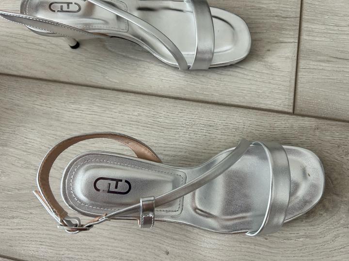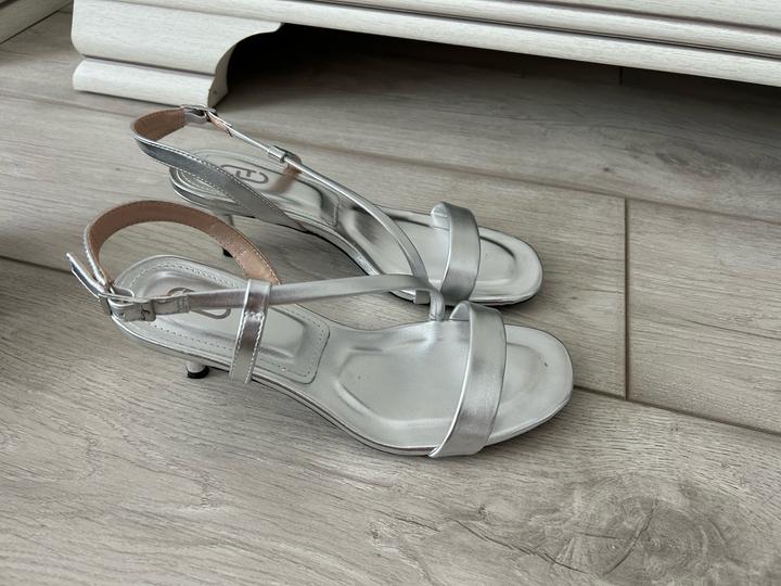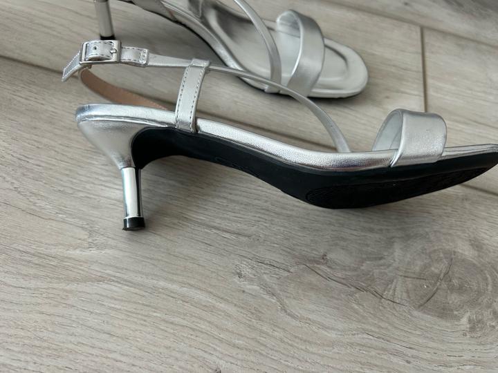 Босоножки серебристого цвета. Каблук 6 см, подошва резина. Одевали 1 раз Артикул: 483922