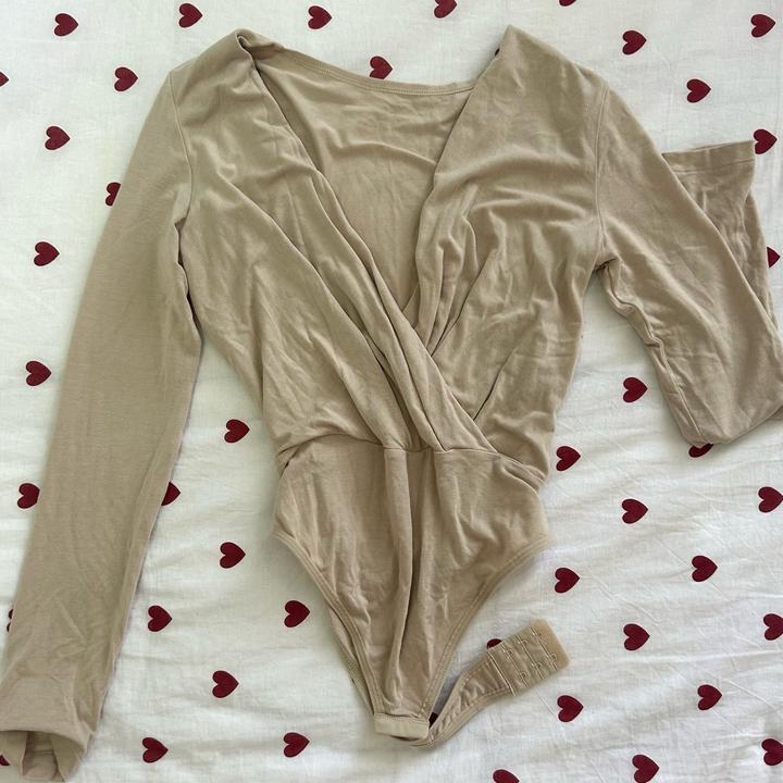 Бежевое боди на застежках, размер one size. Примерно подойдет на XS-L. Бренд неизвестен, брали с инстаграм магазина. Носился редко, состояние идеальное. Отлично смотрится с брюками, очень удобный в носке. Артикул: 484048