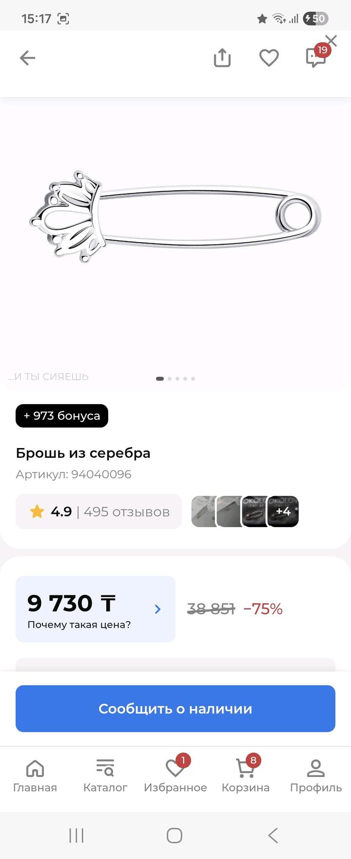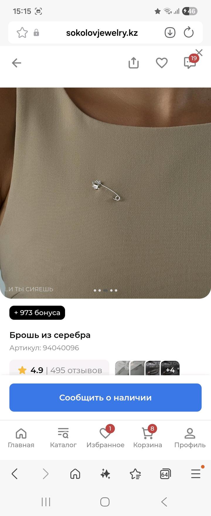 Брошь из родированного серебра 925 пробы, очень мило выглядит. От Sokolov. Новая, со всеми пломбами, никтотне носил, вес 0,66 г. Артикул: 484070