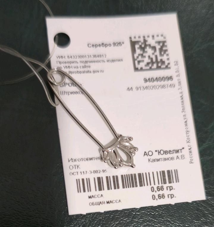 Брошь из серебра 0,66 грамм-