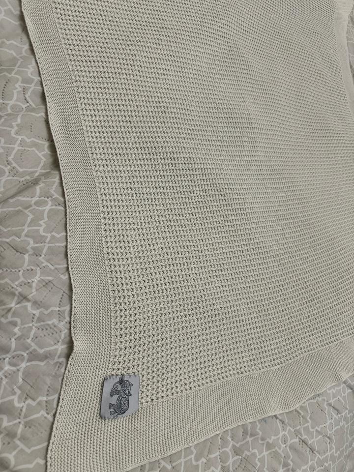Бежевый универсальный плед на выписку для теплого времени, можно использовать до трех лет ребенка, эстетичный, декоративное плетение, состав 100% хлопок И для девочек и для мальчиков подойдет Артикул: 484081