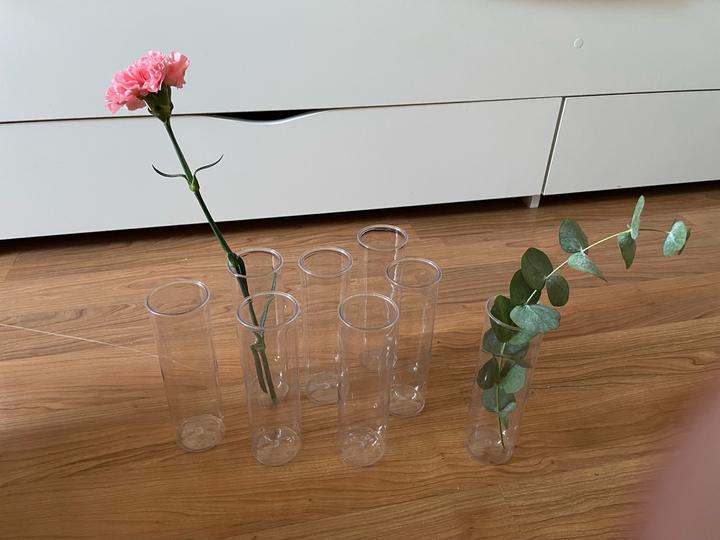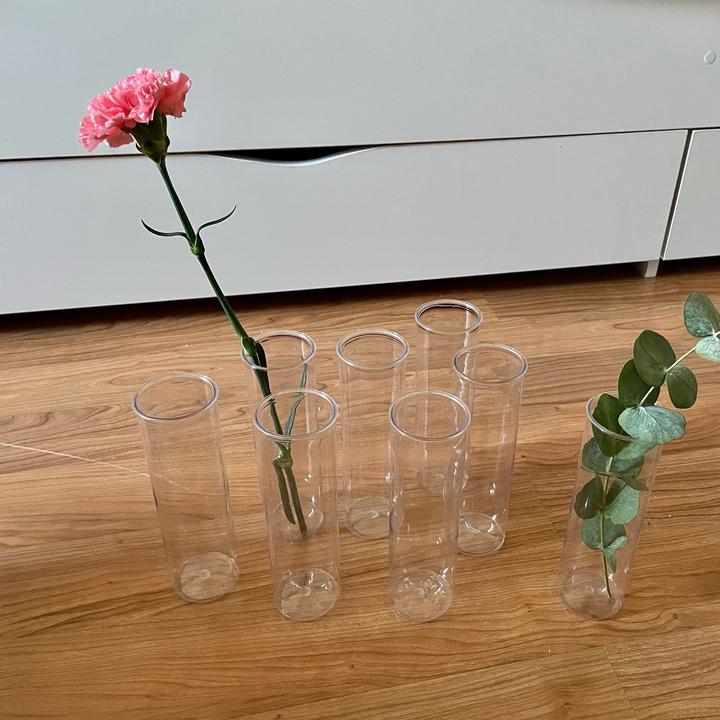 Небольшие вазы (колбы) для цветов и сухоцветов. Новые, не были в использовании. Идеально для оформления разных уголков дома цветами. Вазочки пластиковые, поэтому цена такая! Всего их 8 штук. Длина каждой вазы 17 см, диаметр 5 см Артикул: 484091