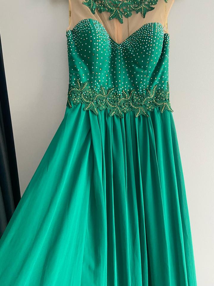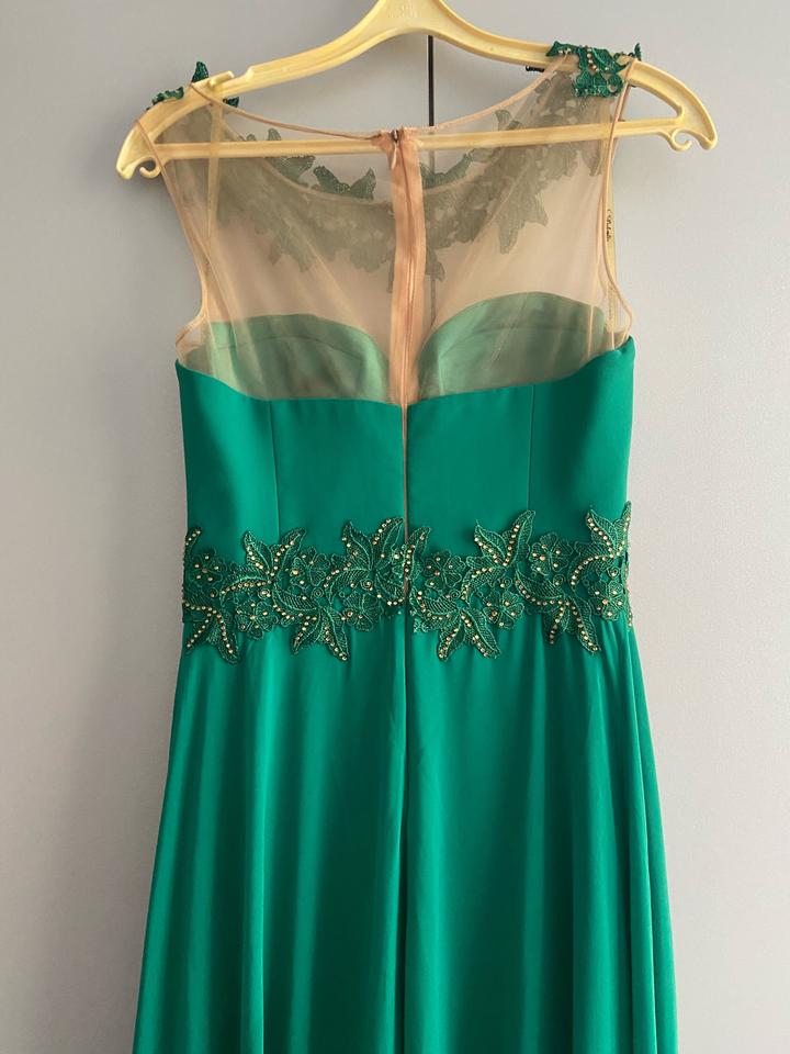 Элегантное длинное вечернее платье изумрудного цвета. Очень красивый и нежный дизайн с декоративной вышивкой и камнями. Размер: 38 (S) Материал: 96% полиэстер, 4% лайкра. Производство: Турция. Платье в отличном состоянии, надевалось несколько раз. Подойдет для торжества, свадьбы, выпускного или фотосессии. Артикул: 484167