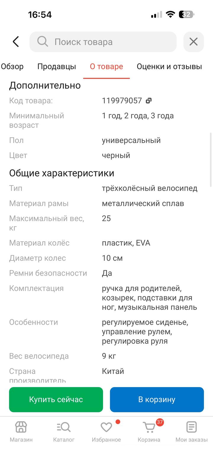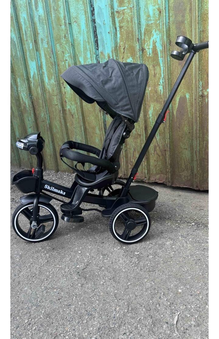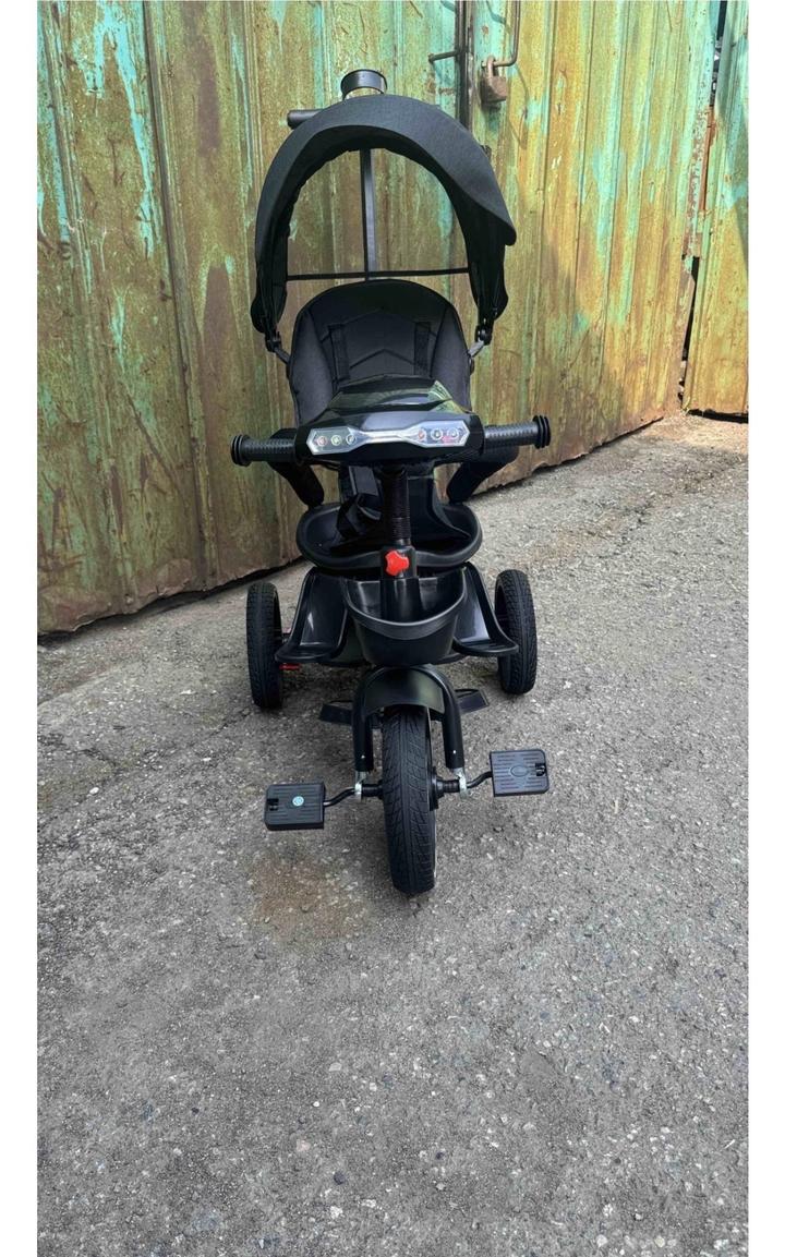 Трехколесный велосипед детский . Цвет черный . Сам велик 9кг . Ручка для родителей . Козырек . Подставка для ног . Музыкальный понель . Регулируемое сиденье . Регулируемое руль . Всё всё в рабочем состоянии 😊👍 не раскрывшийся . Артикул: 484193