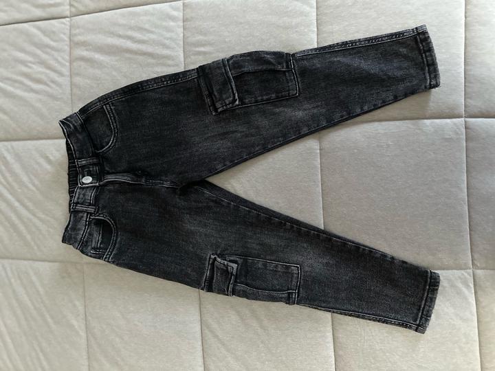 Джинсы карго на мальчика Zara. Не подошел размер+в школе всегда до вечера. Сразу вытянулся, не носил. Очень красивый оттенок черно-серый. Артикул: 484242