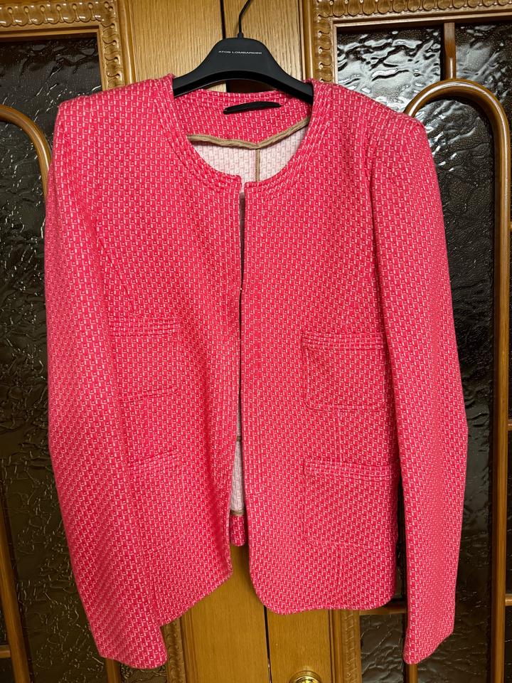 Итальянский жакет Atos Lombardini красно-розового цвета, IT размер 44. Был одет пару раз, состояние идеальное. Артикул: 484308