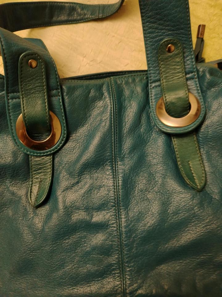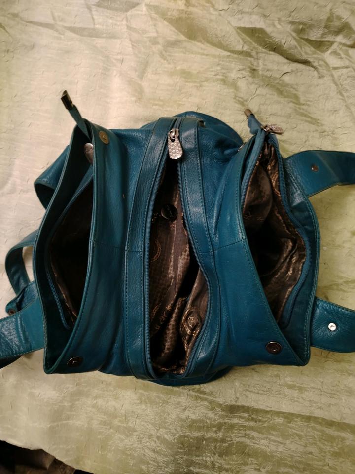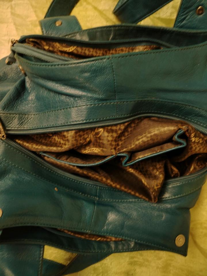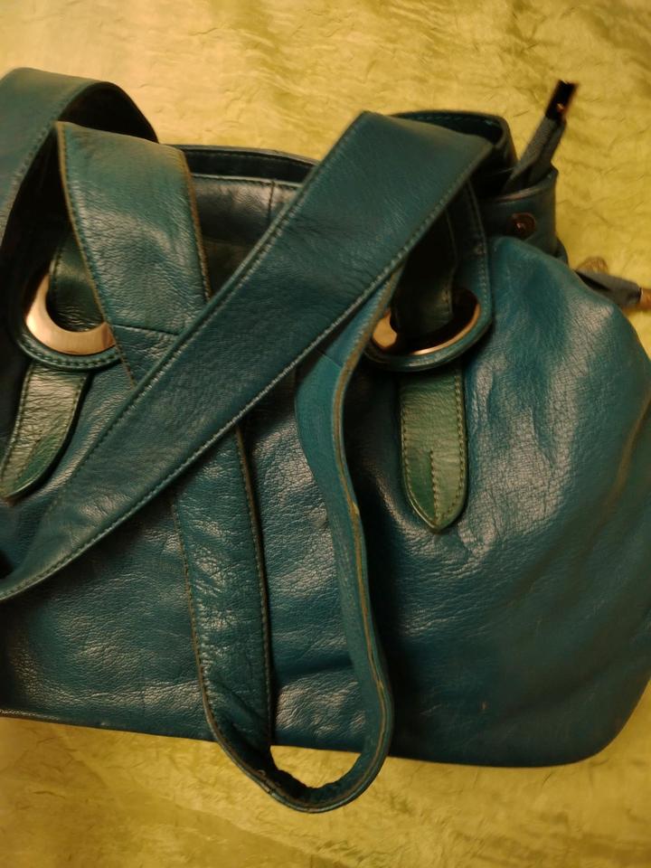 сумка, темно бирюзовая, кожа натуральная, производство Индия, как я помню, три отделения, очень вместительная Артикул: 484322