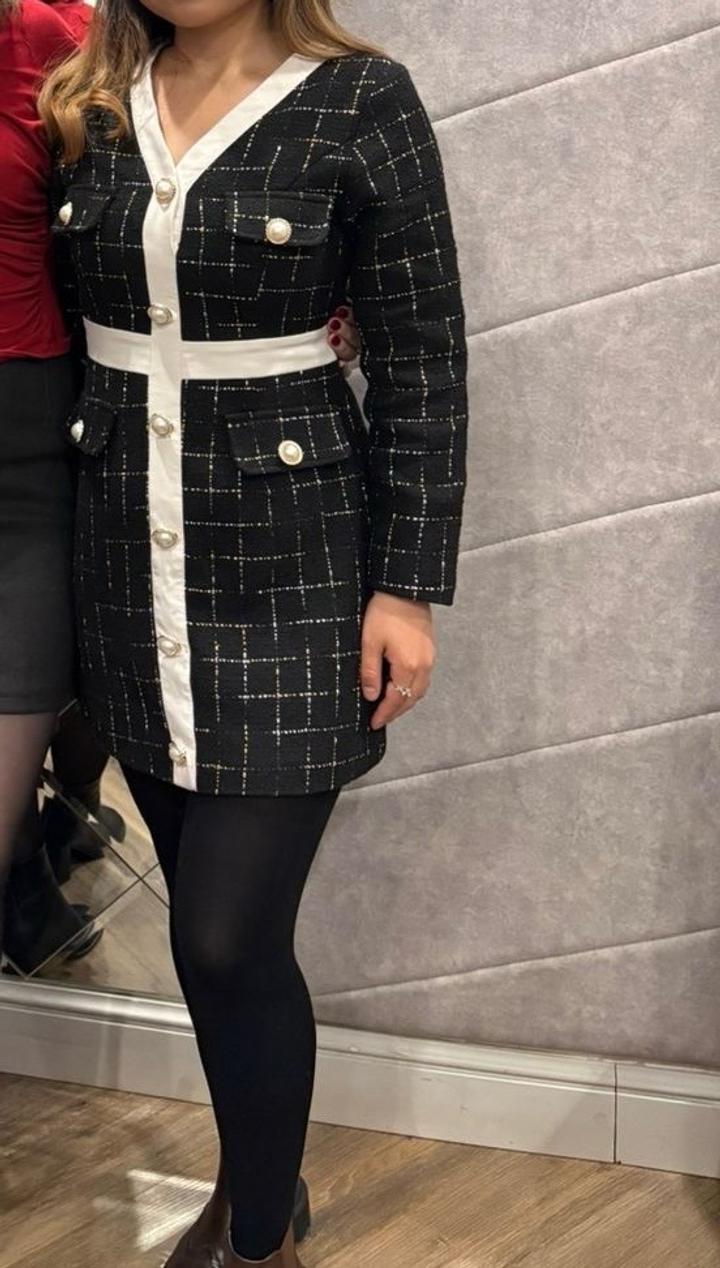 Стильное чёрное твидовое платье в классическом стиле. Надевала всего 2 раза, состояние отличное. Очень элегантно смотрится и красиво сидит по фигуре. Подойдёт как для работы, так и для особых мероприятий.” Артикул: 484514