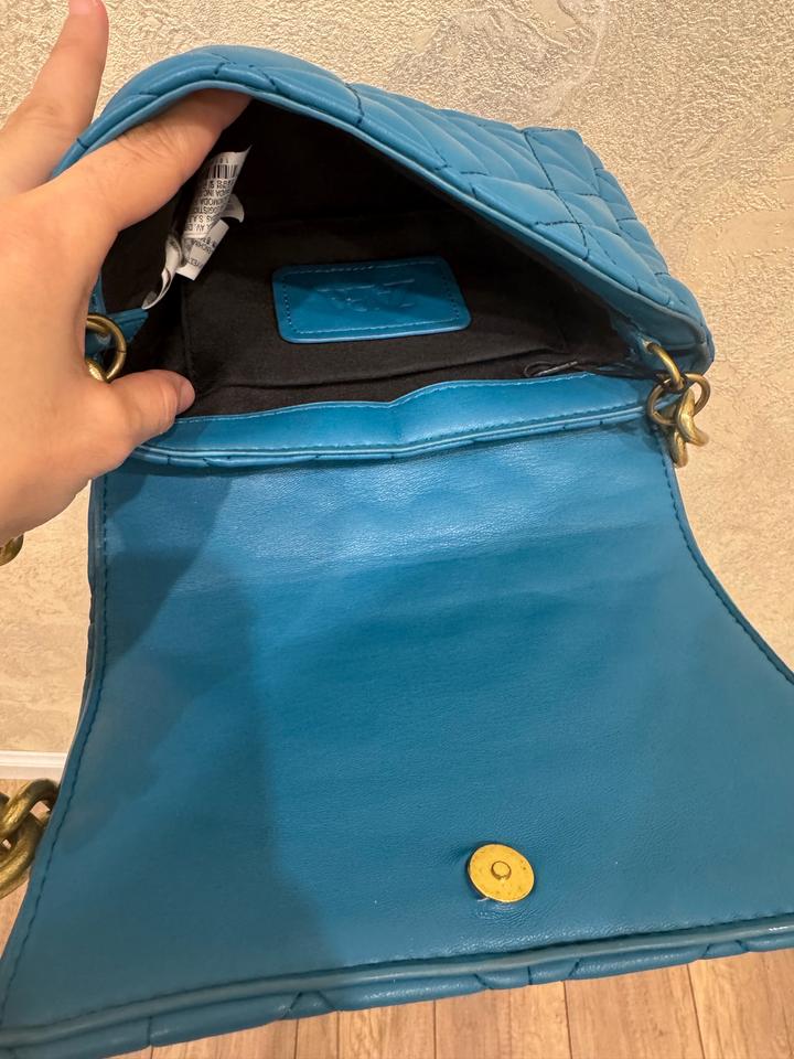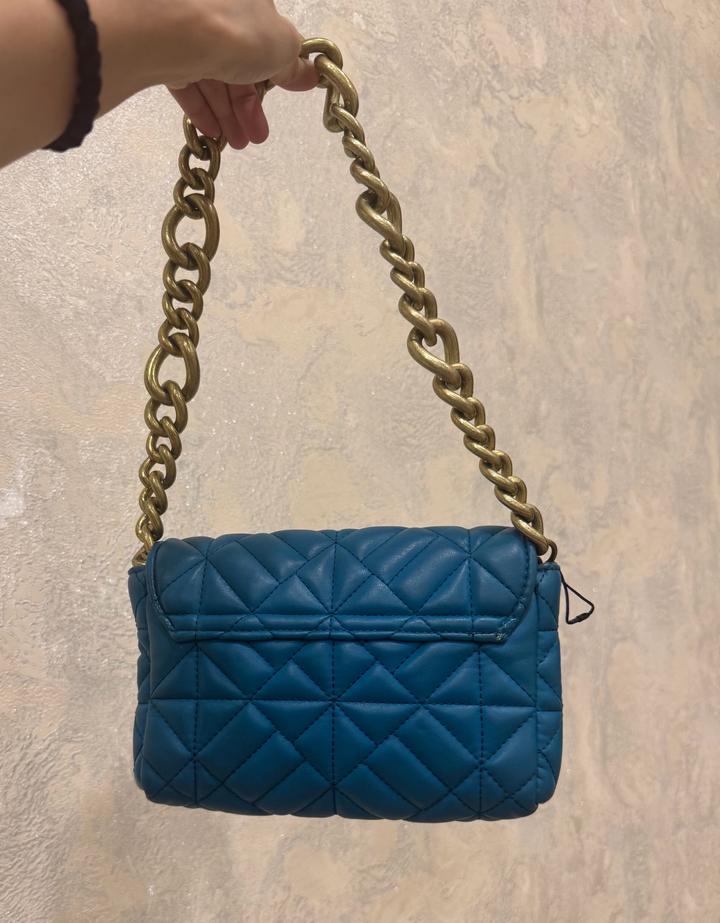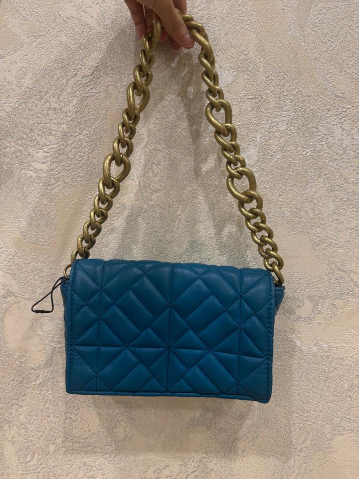 Элегантная сумка Zara необычного весенне-летнего бирюзово-морского цвета, выглядит дорого за счет золотистой фурнитуры, классно освежает образ Артикул: 484594