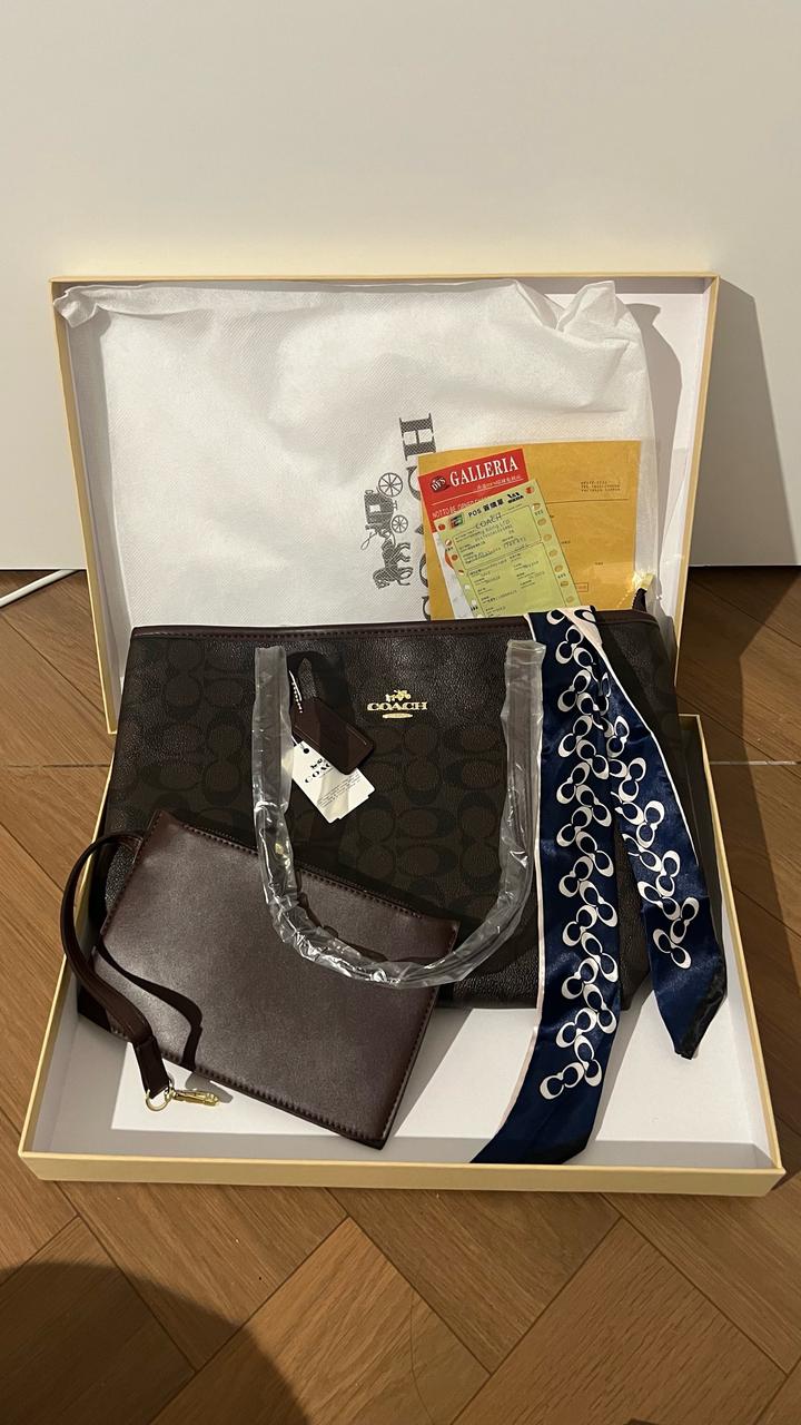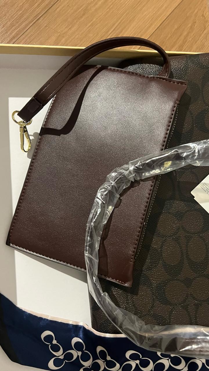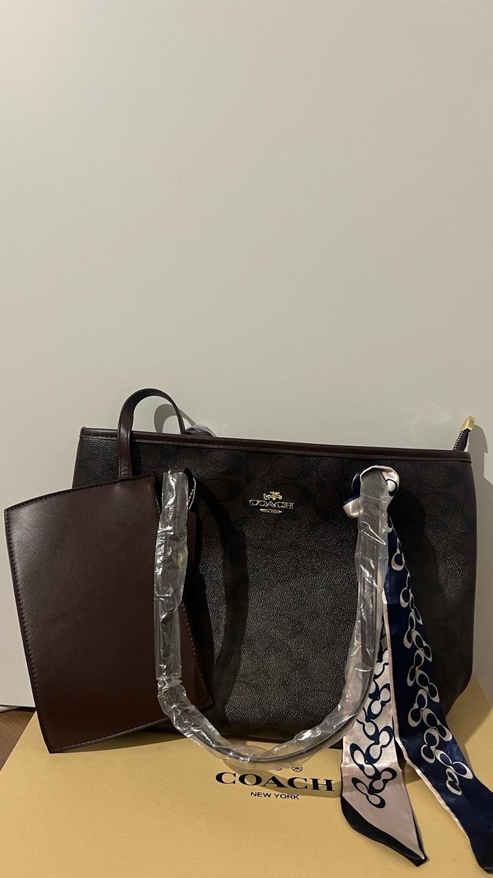 Продам сумку-шоппер coach. В стильном и вкусном шоколадном цвете. Полный комплект мини косметичка, брелок и шарфик. Очень вместительная и стильная сумочка на каждый день. Сама не носила ни разу в коробке с биркой пыльником и документами. Артикул: 484610