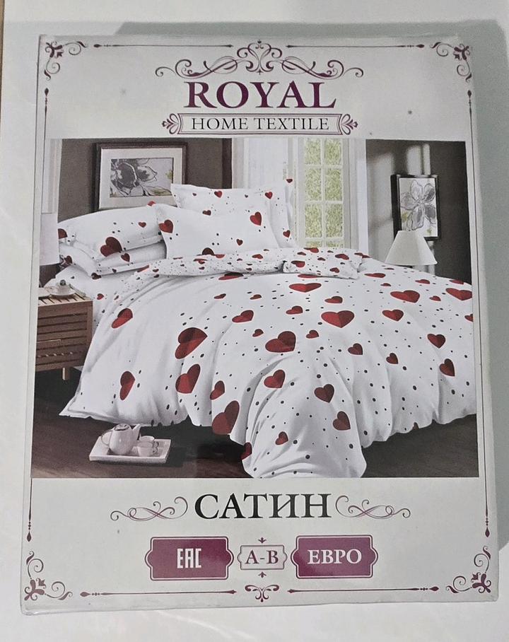 Турецкое постельное белье из Сатина, Евро двухспалка, с милыми сердечками Артикул: 484612