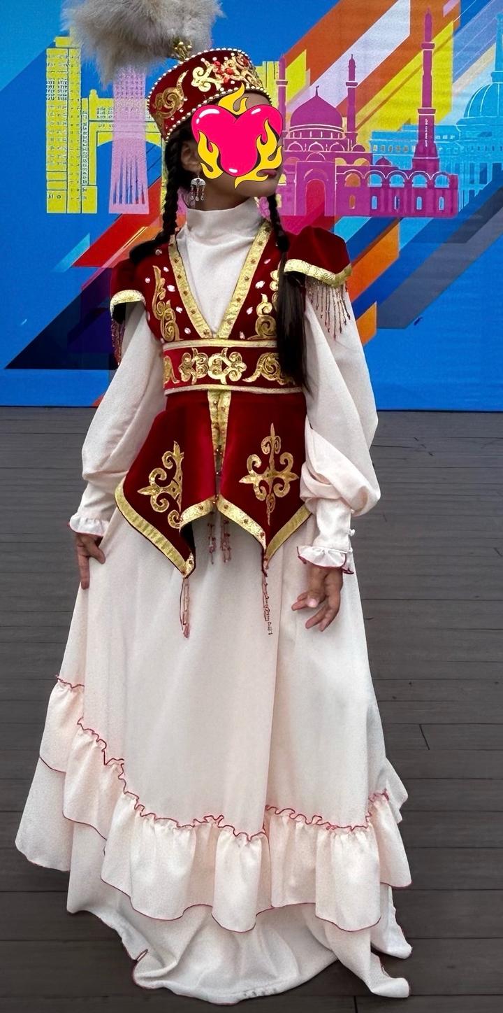 Продам национальный казахский костюм на девочку, подходит на рост 130-155. В комплект входит блузка, юбка, шапка, камзол с поясом. Очень красивый костюм, расшит бисером и бусинами. Качество отличное. Можно выступать, надевать на Наурыз. Костюм приносил призовые места и Вам будет сопутствовать удача Артикул: 484655