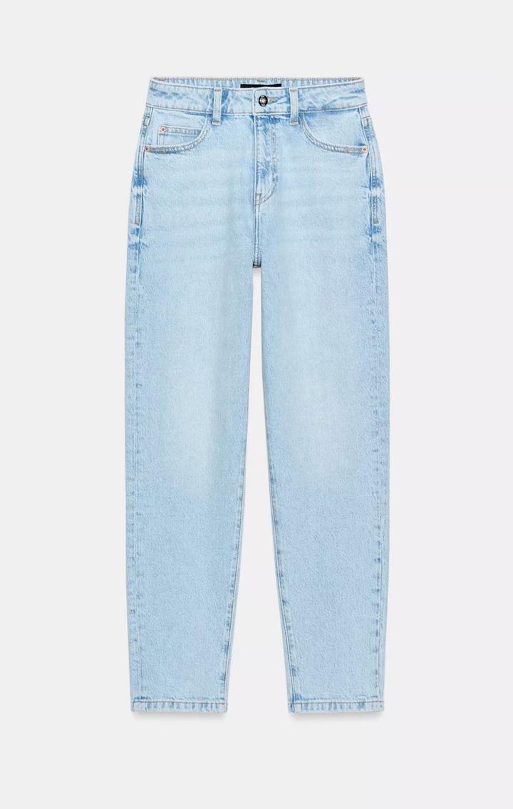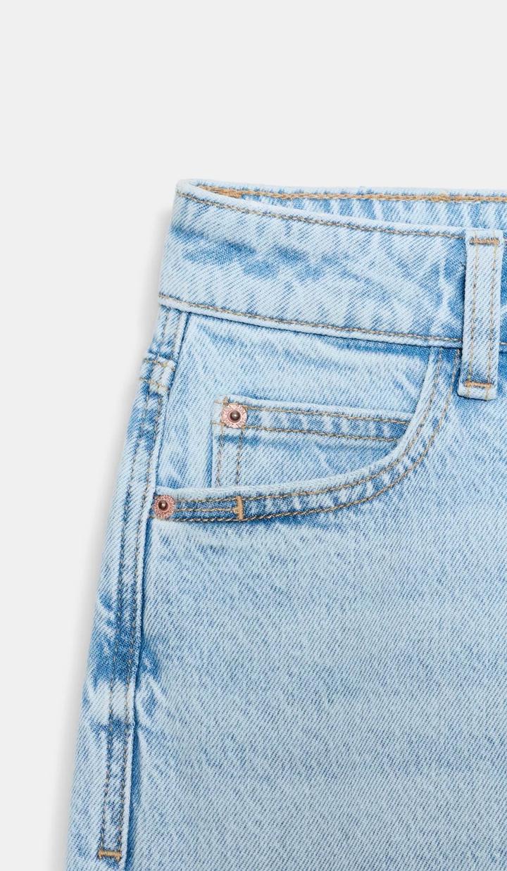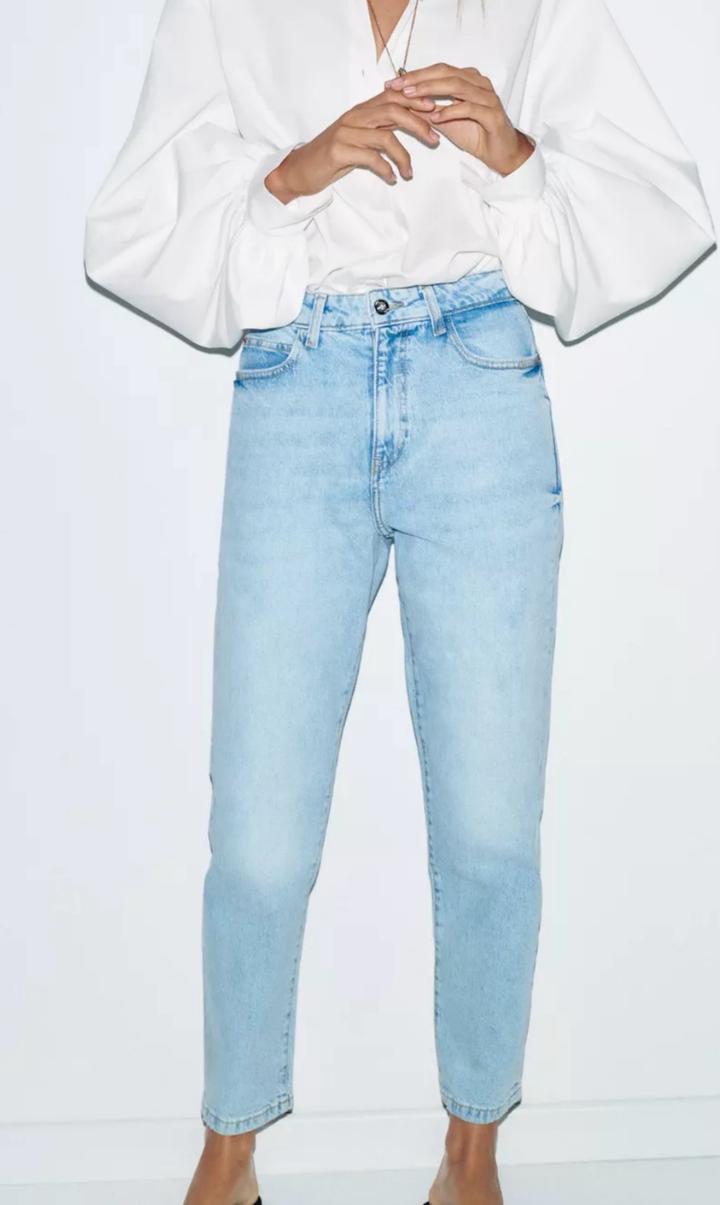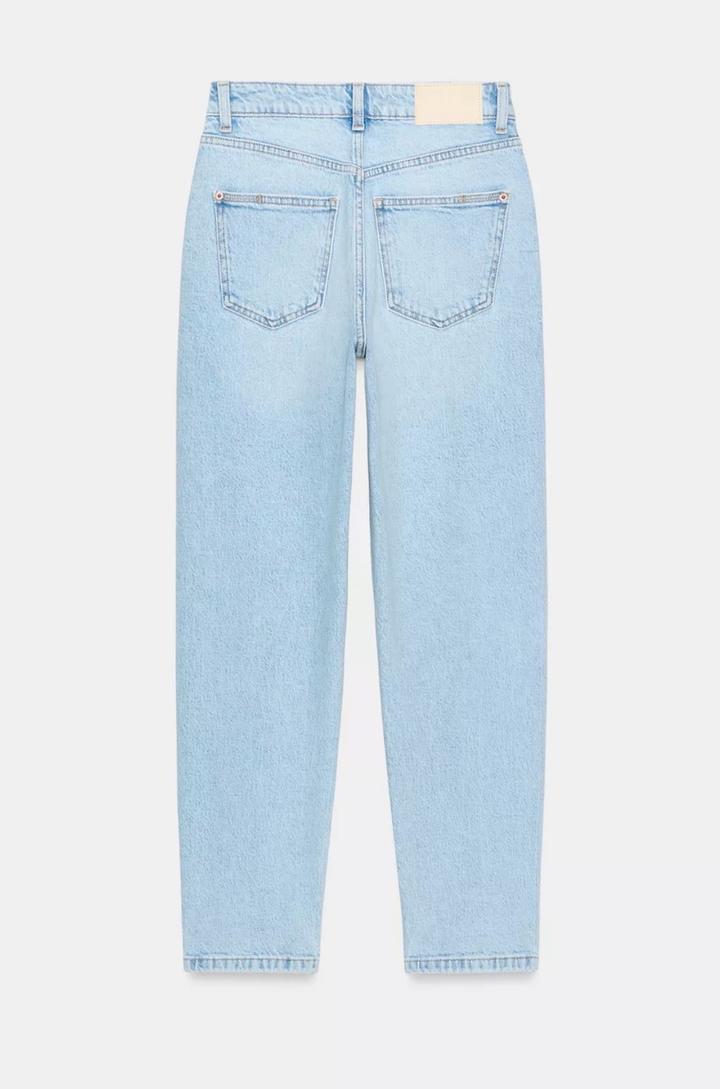 Размер 38 ВЫСОКАЯ ПОСАДКА - MOM LEG - ДЛИНА ДО ЩИКОЛОТКИ - ЖЕСТКАЯ ТКАНЬ Джинсы с высокой посадкой, пять карманов. Застежка-молния и пуговица. Артикул: 484678