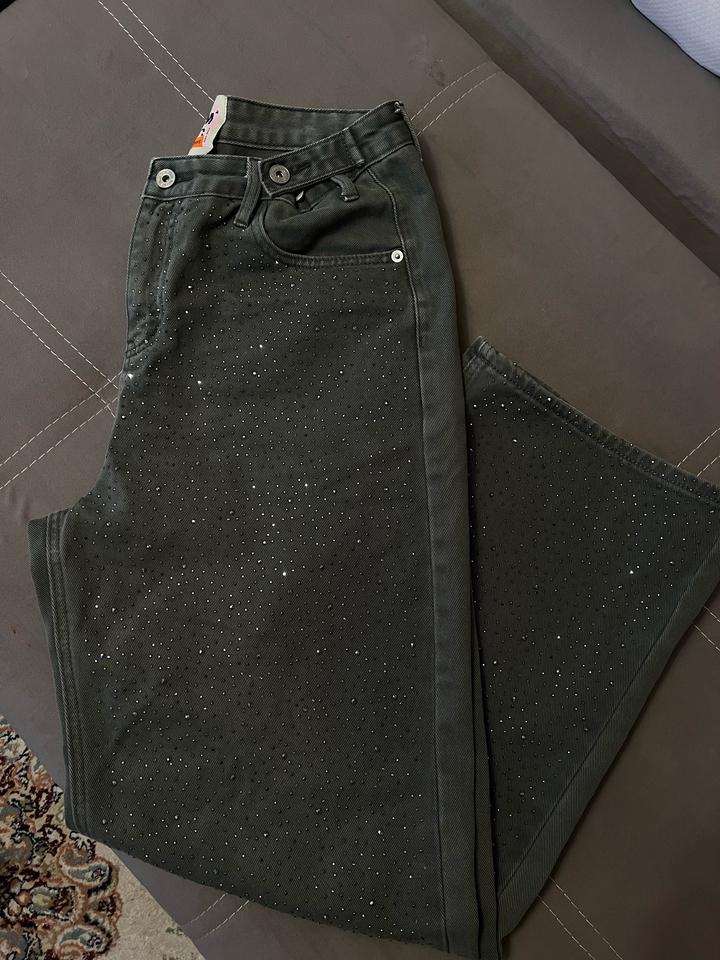 Джинсы в стразу Все сразу на месте В носке пару раз Состояние 10/10 По бокам регулируется (таз) Размер М-Л Цвет Хаки Артикул: 484714