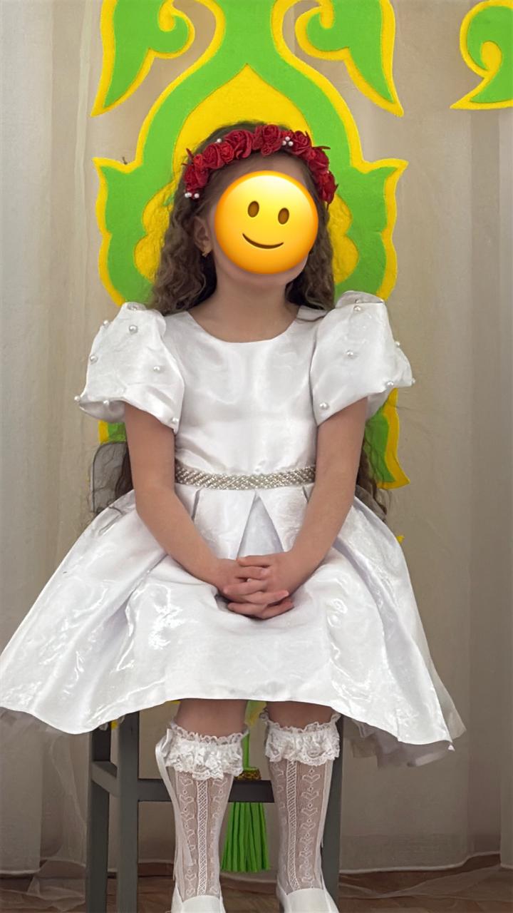 Платье красивое и пышное в идеальном состоянии , одето 3 раза (буквально по часу) Одевали в 6 лет, подойдет на худенькую девочку 7 лет Сзади завязывается бант из фатина , Артикул: 484725
