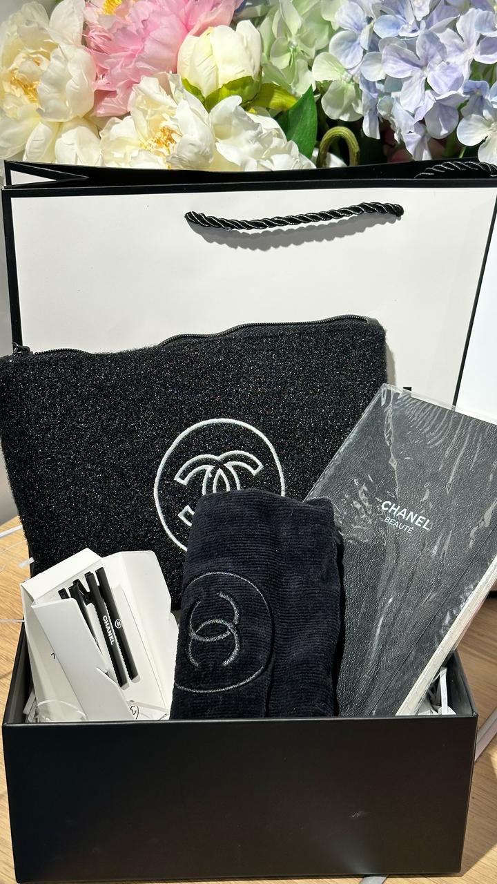 Набор Chanel: Косметичка Блокнот Полотенце 30*30мм Заколки Пакет, коробка, лента Артикул: 484864