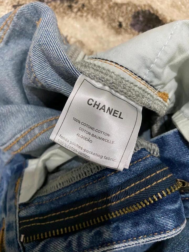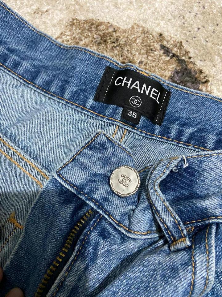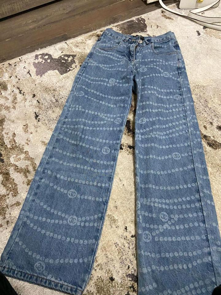Стильные широкие джинсы в стиле Chanel (с жемчужным принтом)XXS