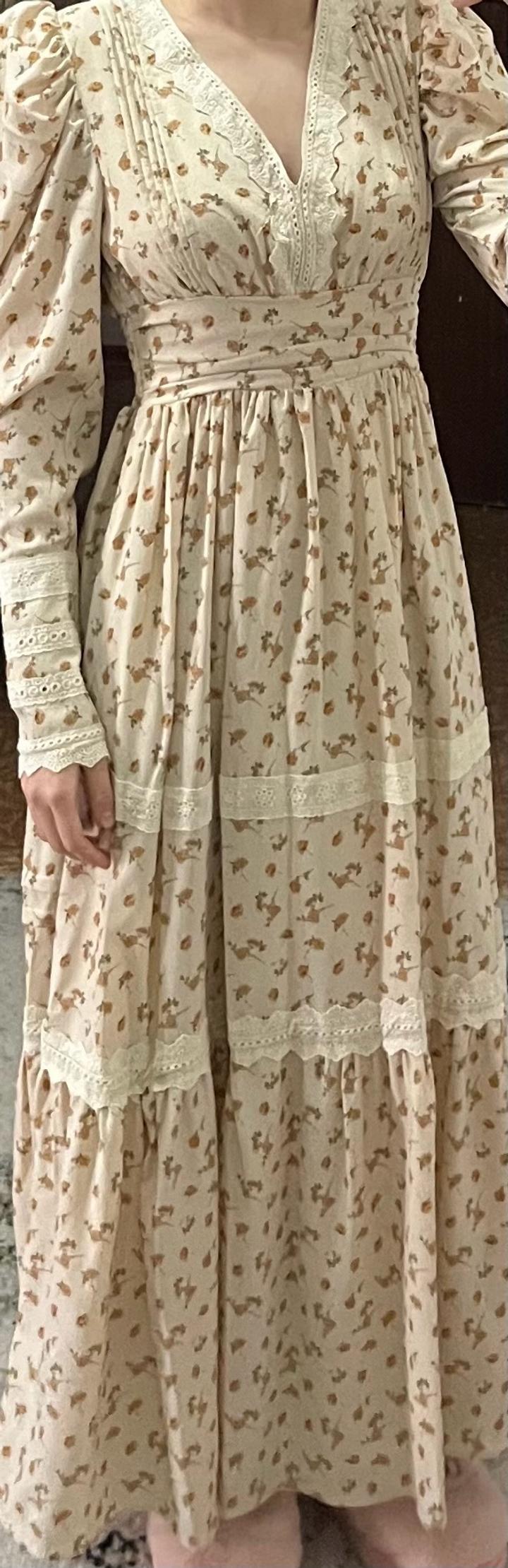 Французское платье с вырезом на декальте. Длина юбки французская, и есть кружева как на фотках. Фотка сделана с помощью ии тк, не было возможности, хорошо сфотографировать. Обязательно выставлю фотку в настоящем формате. (в лс) Артикул: 484909