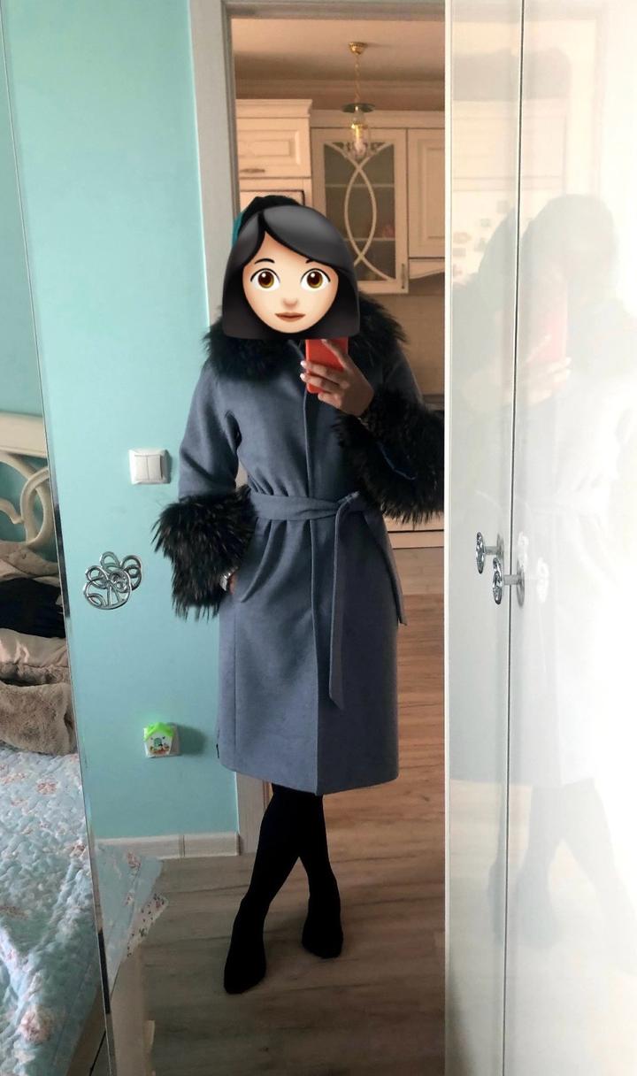 Пальто демисезонное, натуральный мехS/M