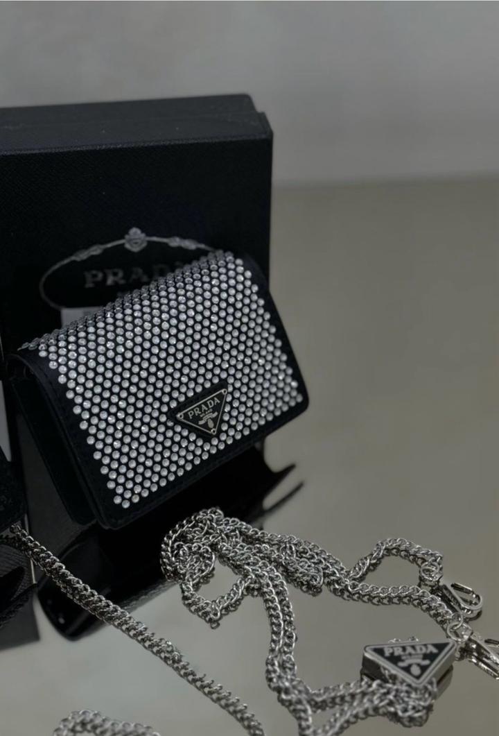 Мини сумка Prada новая Имеется ремень, пыльник, коробка. Производство Турция Наружная материал велюр, полностью камни, с железный нержавеющий сталь с бред надписью Prada, на ремне тоже есть бренд. Артикул: 484930