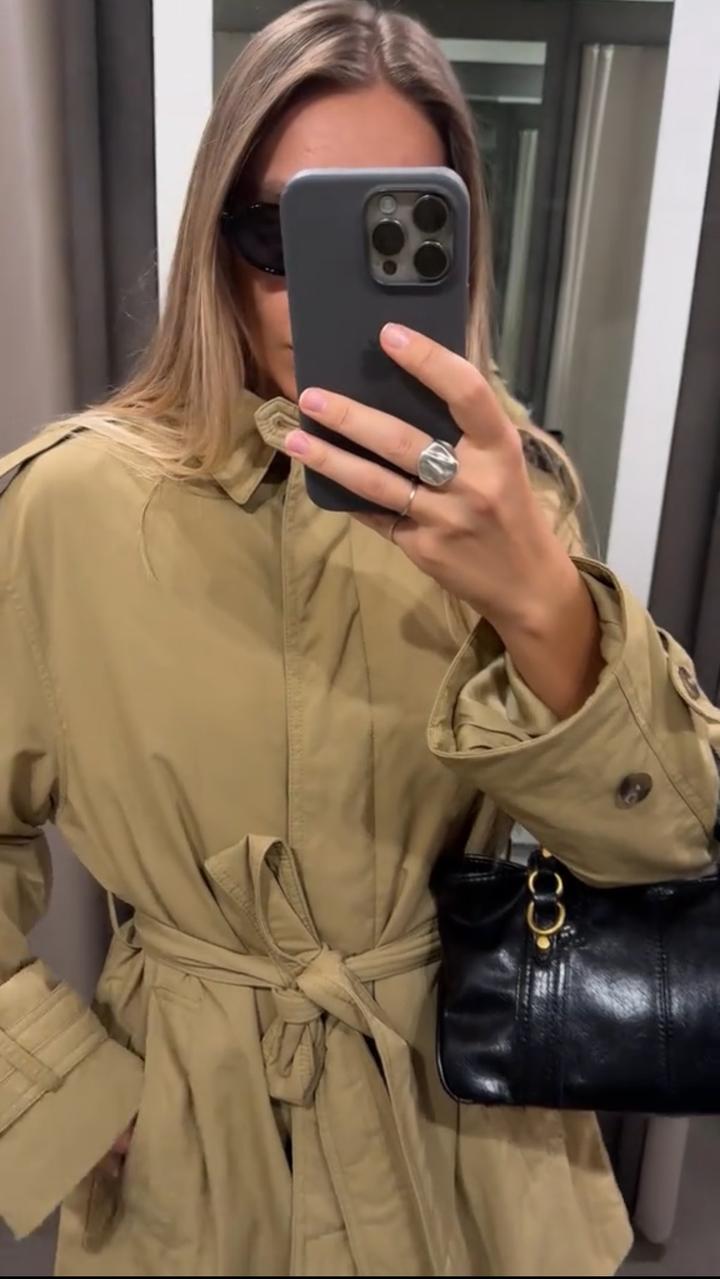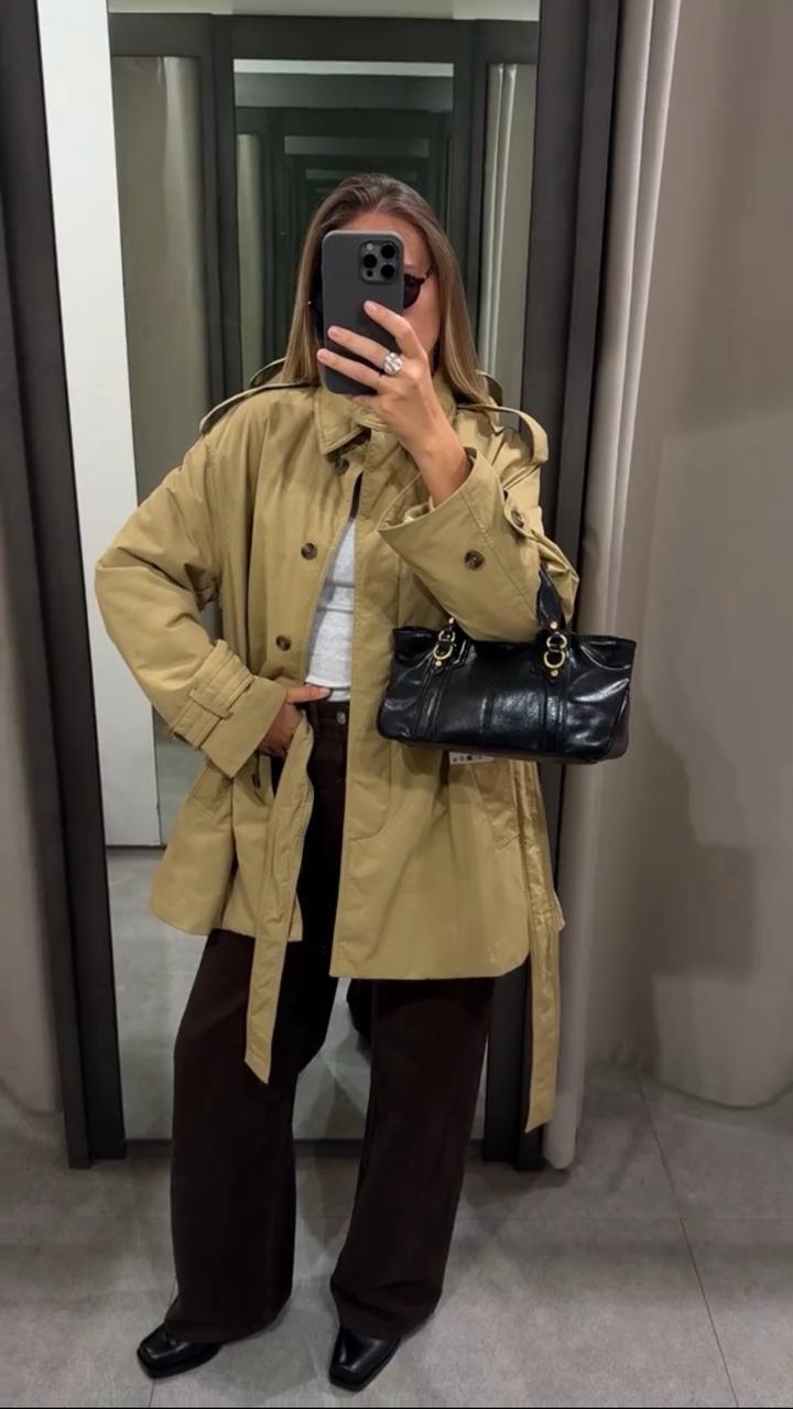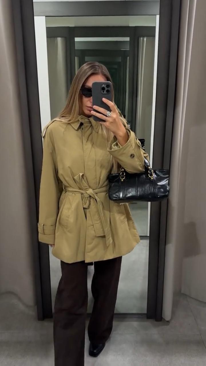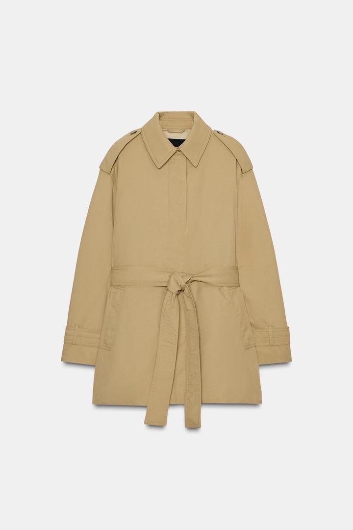 Дутый тренч с поясомS