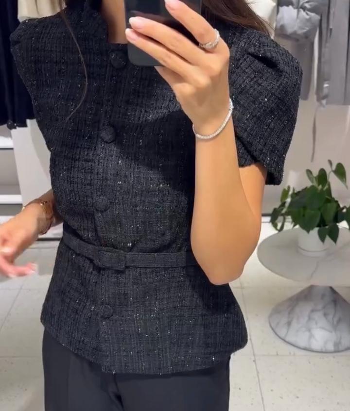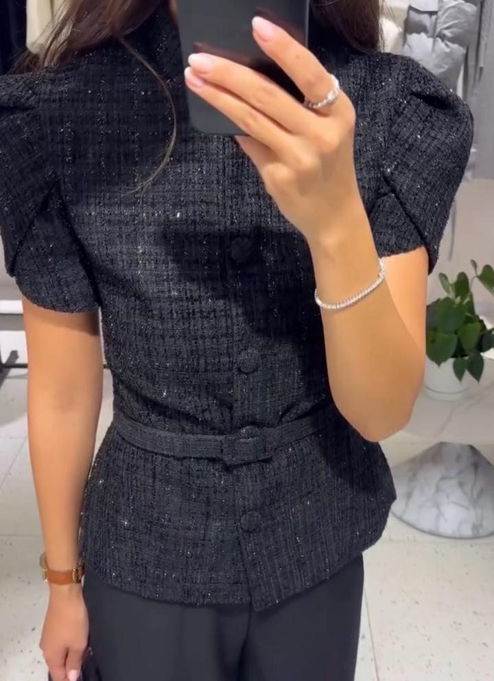 Жакет твидовый черныйS