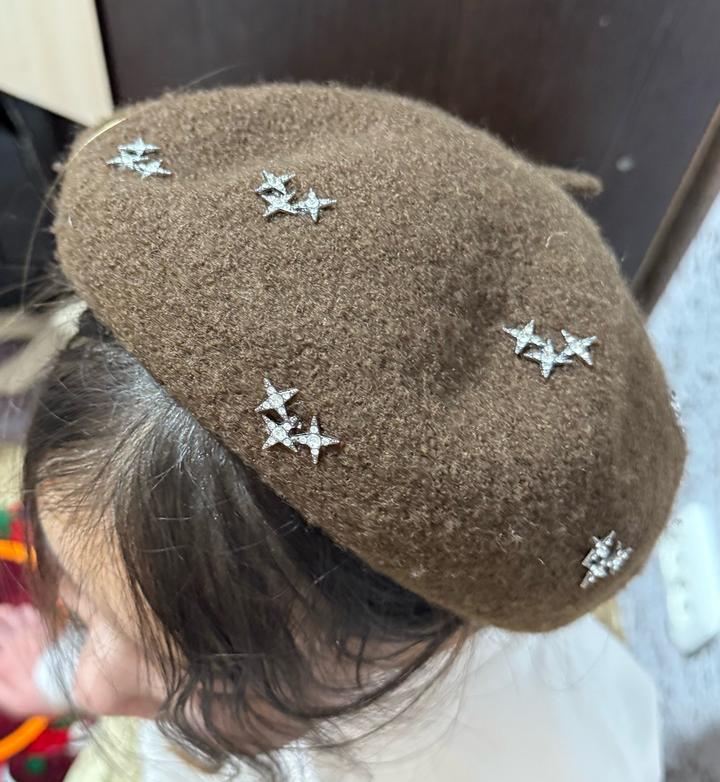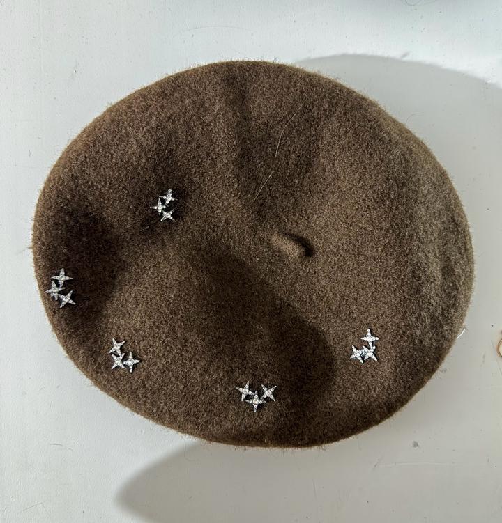 Коричневая беретка со звездочками-