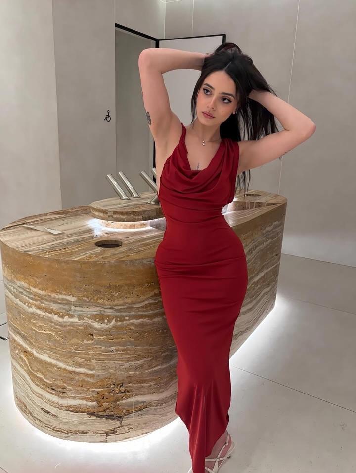 Длинное струящееся платье с драпированным вырезом и проймой. Низ расклешенного силуэта. Можно трансформировать рукава и преобразить образ. Артикул: 485086