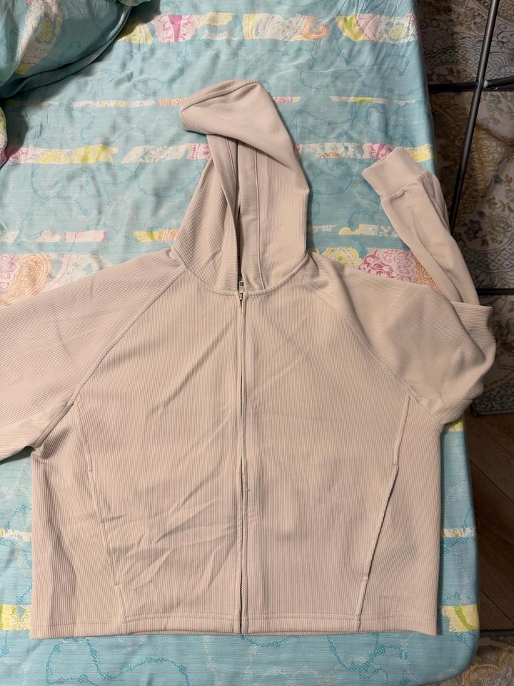 Укороченная зипка (кофта за замке) с капюшоном от Oysho в сероватом цвете. Ни разу не носила, бирки к сожалению нет, но ярлыки и логотип на месте, пятен и дырок нет, но в некоторых местах торчат нитки (так и было при покупке). Покупала в 2025 году. Приятная к телу ткань. Артикул: 485094
