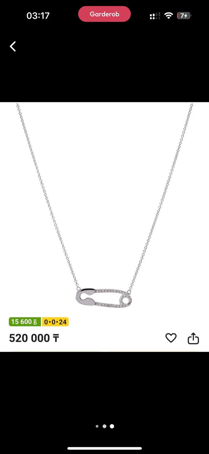 Подвеска в виде булавки от Constella, оригинал, носили всего пару раз, подвеска из белого золота, с бриллиантиками покупали в Esentai Mall, длина цепочки 45 см Артикул: 485120