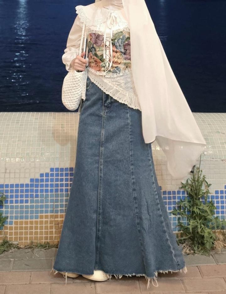 Джинсовая юбка длины макси Покупала в dress me В хорошем состоянии, без дефектов На фото я Смотрится красиво, а низу расклешенное Артикул: 485164