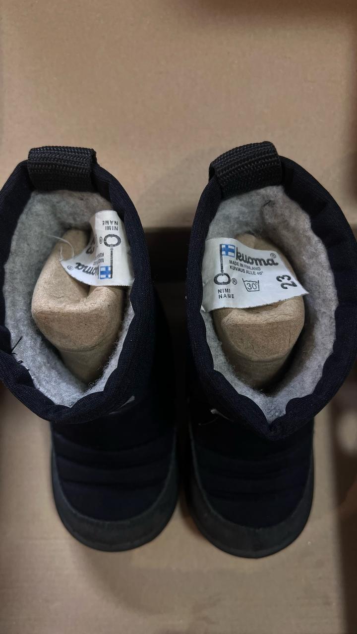 Продам сапожки куома, 23 размер, черного цвета, ножки зимой в тепле, ничего не протекает, не мокнет и не потеет, голенище высокое, снег не попадает внутрь. Внутри натуральная овчина, снаружи водоотталкивающая поверхность Артикул: 485267
