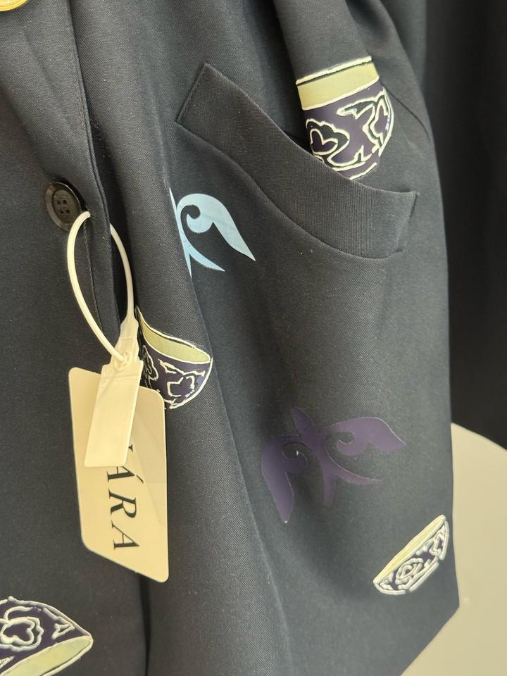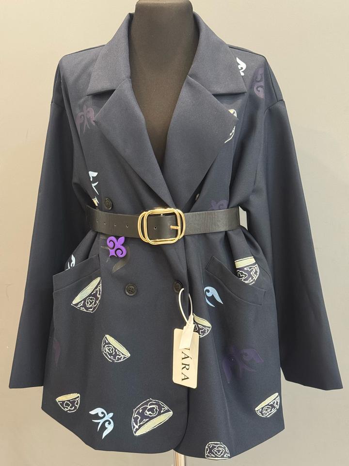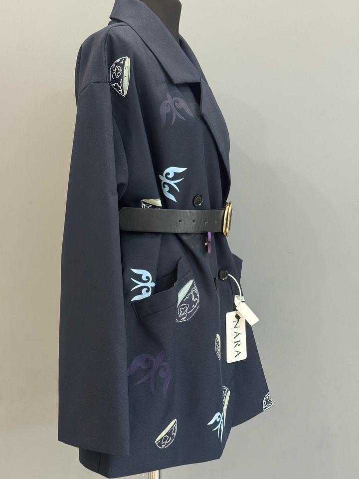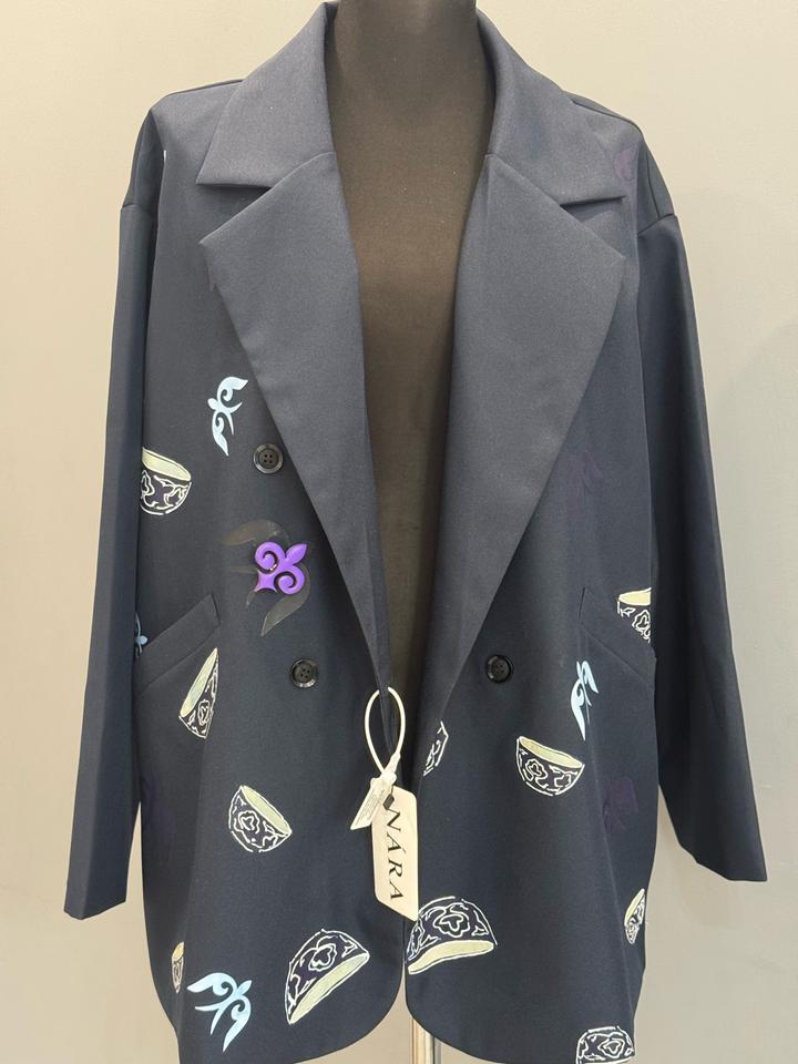Пиджак темно-серый в современном национальном стиле с принтамиM