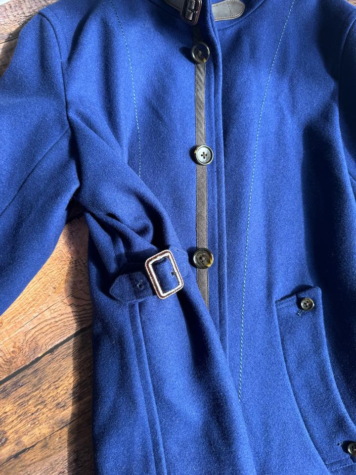 Пальто синего глубокого оттенка. 💯 шерсти Внутри подкладка шелк 🔥 Кожная часть - натуральная кожа 🔥 Размер: М Стойка воротник 👍🏻🤌🏻 В отличном состоянии 🔥👍🏻 Артикул: 485344