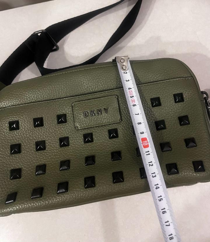 Оригинал. Покупала в официальном магазине Walker в Mega Alma-Ata за 80 000 тенге. Компактная и очень стильная модель с характерным дизайном DKNY - фактурная кожа и декоративные металлические пирамидки на передней панели. Сумка выглядит современно и немного дерзко, но при этом легко вписывается в повседневные образы. Артикул: 485348